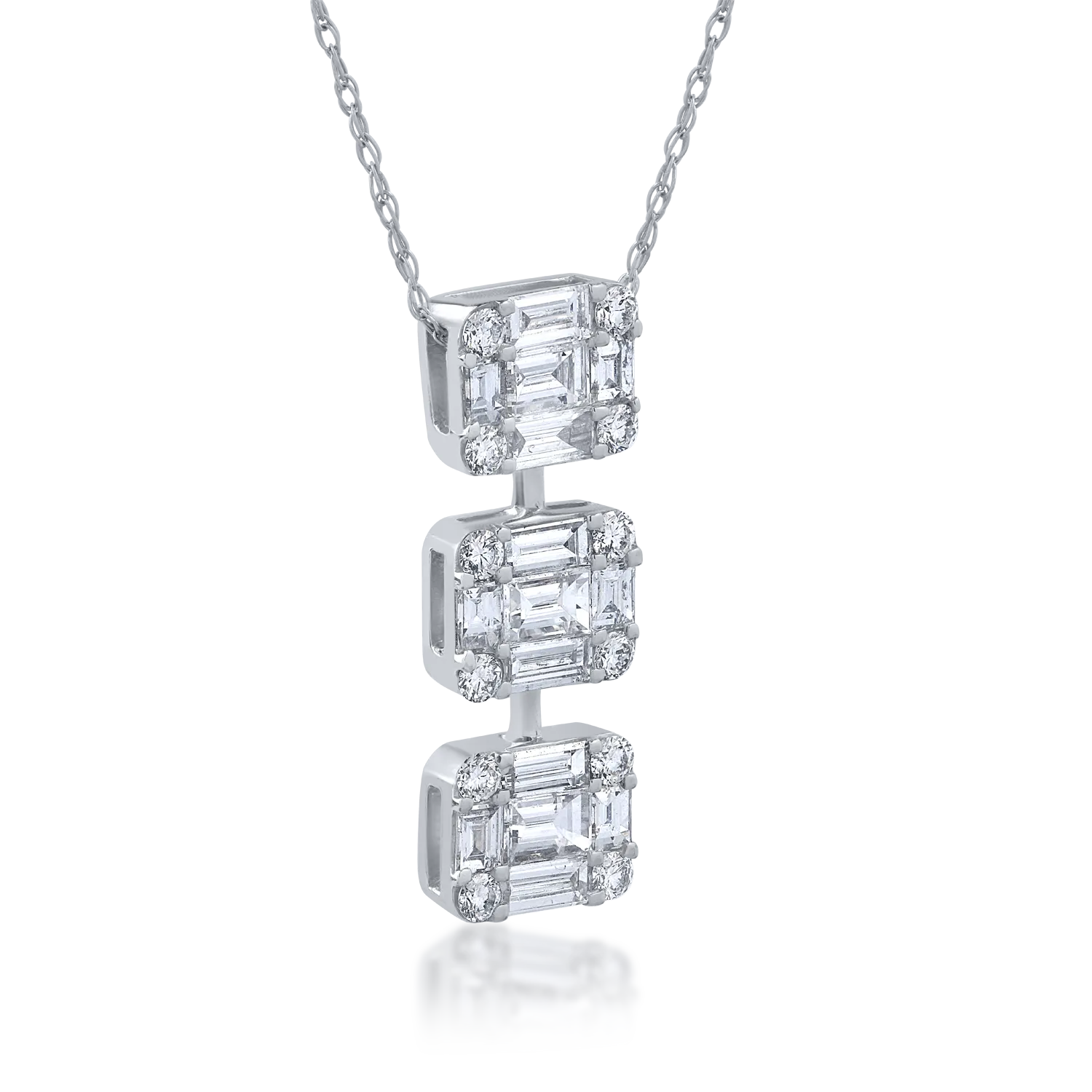 Lant cu pandantiv din aur alb cu diamante baguette de 1.16ct