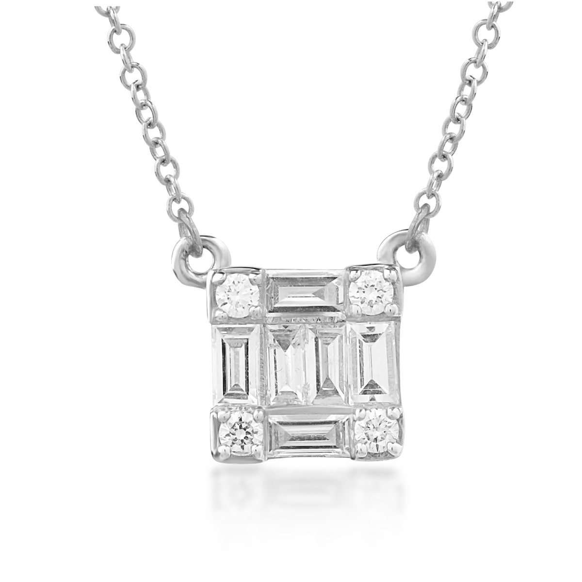 Lant cu pandantiv din aur alb cu diamante baguette si rotunde de 0.291ct