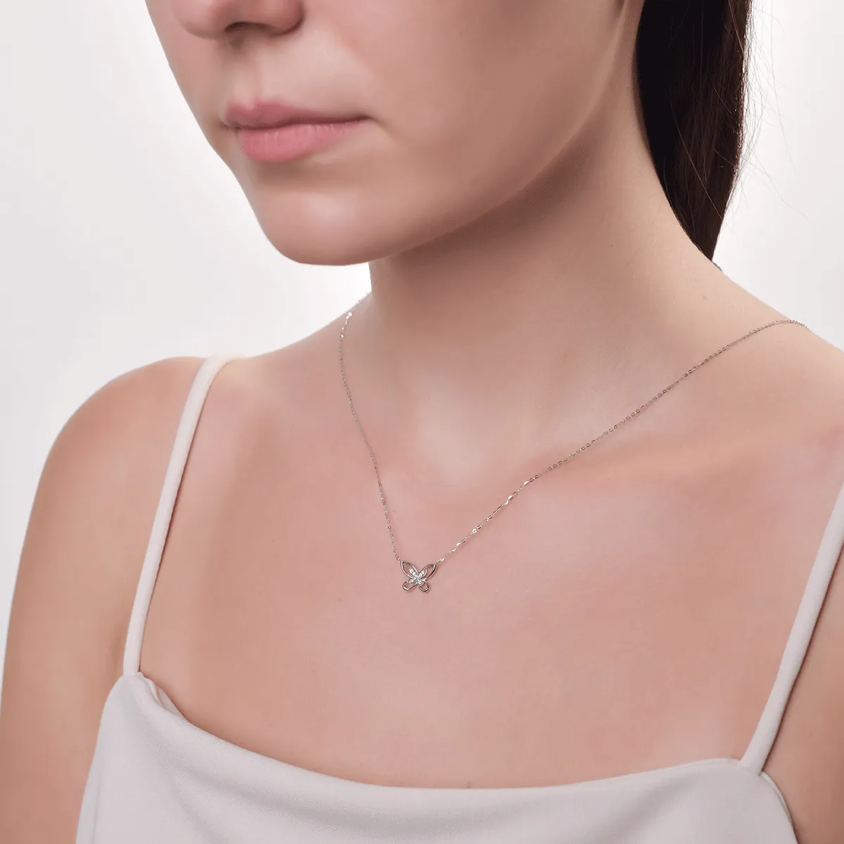 Lant cu pandantiv din aur alb cu diamante de 0.028ct