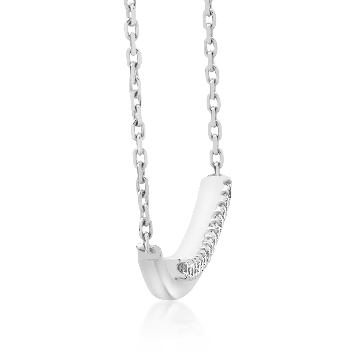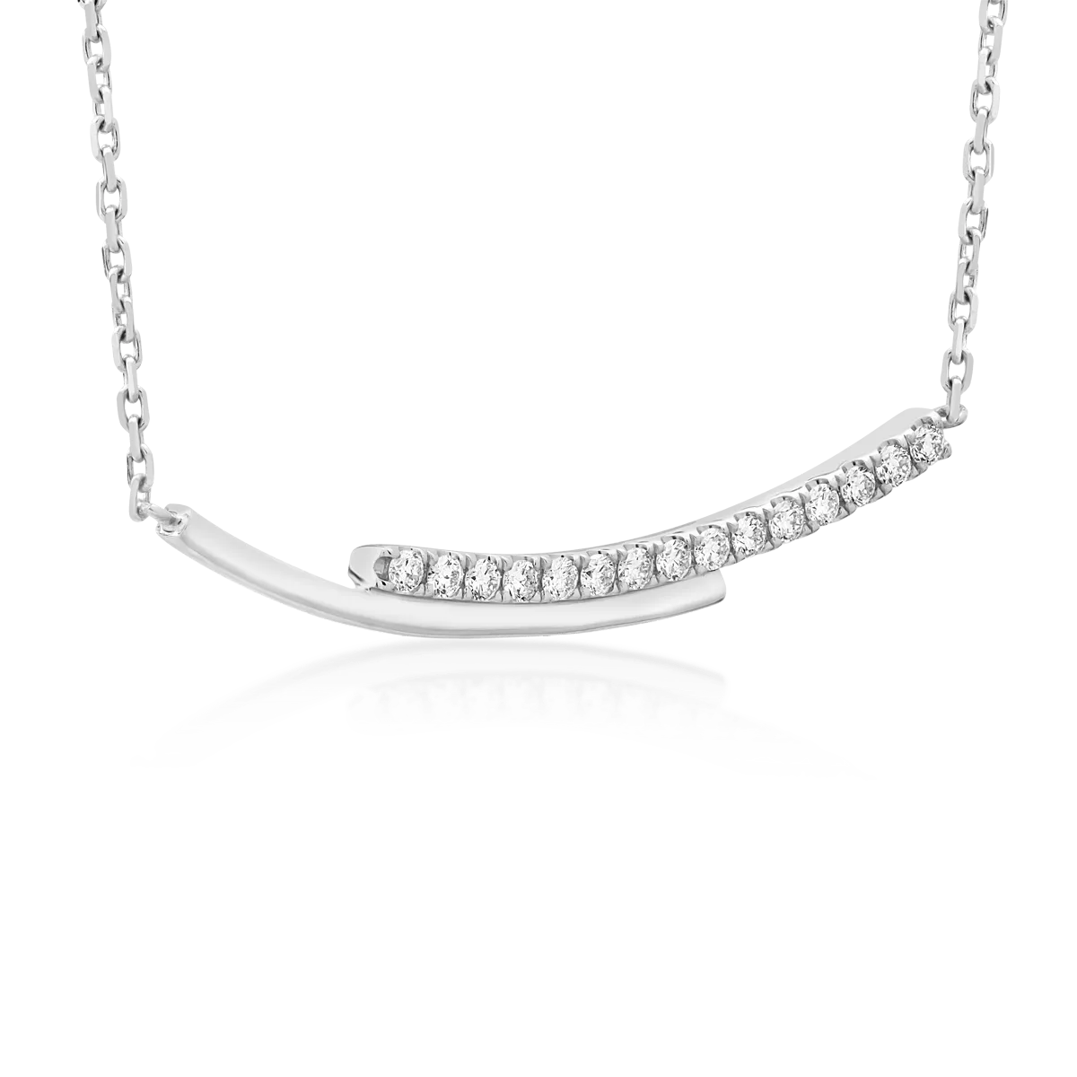 Gaseste frumusetea in ritmul fiecarui moment. Lasa-te cucerita de eleganta subtila a acestui lant cu pandantiv din aur alb cu diamante de 0.142ct si exprima-ti personalitatea prin detalii care spun o poveste. Designul minimalist il face potrivit pentru orice tinuta, iar stralucirea rafinata a diamantelor adauga acel plus de distinctie care defineste bijuteriile TEILOR. O piesa creata pentru femeia moderna, sigura pe ea. TEILOR – bijuterii atemporale care surprind prin finetea designului!