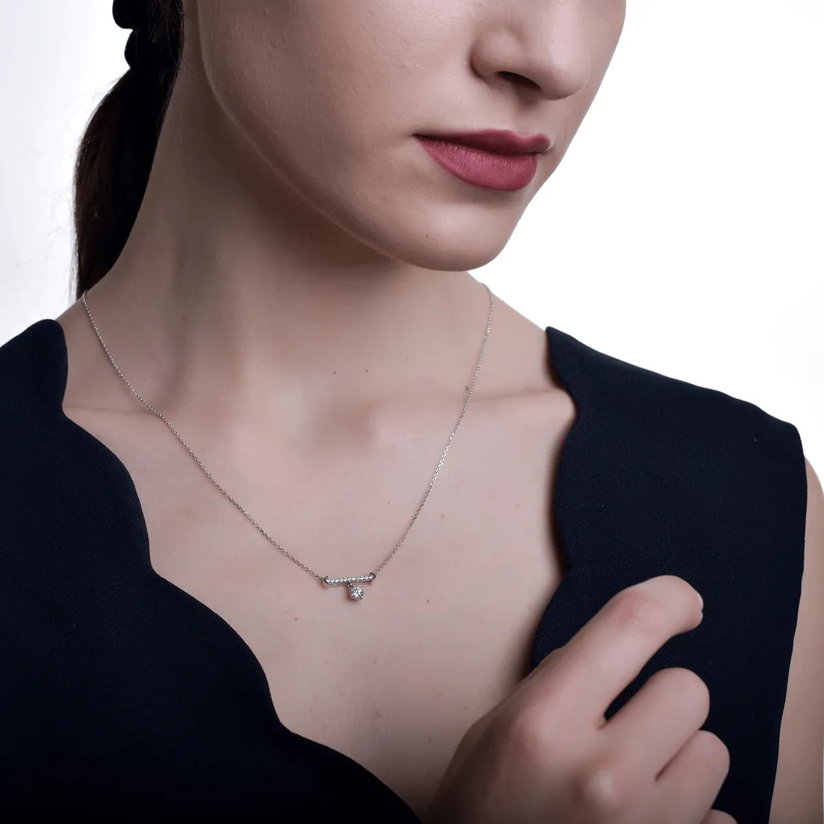 Acest lant cu pandantiv din aur alb cu diamante de 0.29ct este o bijuterie care transmite eleganta pura prin simplitatea sa. Finisajul lucios al aurului si montura discreta a pietrelor subliniaza atentia la detalii, rezultand un design echilibrat si modern. Perfect pentru a fi purtat zi de zi, dar suficient de sofisticat pentru momentele speciale, pandantivul evidentiaza rafinamentul discret al celei care il poarta. Este o expresie a stilului autentic si a feminitatii naturale. TEILOR – bijuterii create in numele frumusetii!