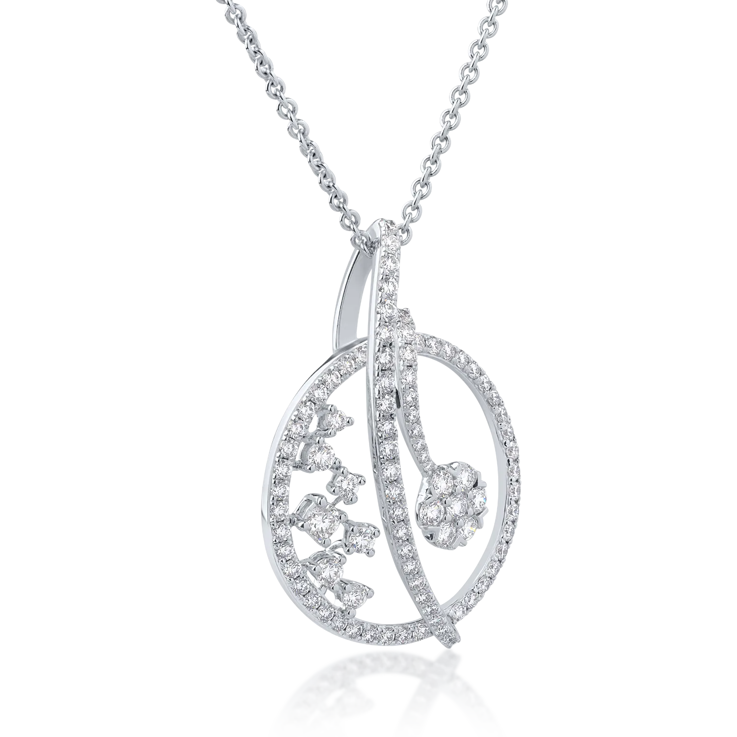 Lant cu pandantiv din aur alb cu diamante de 0.97ct