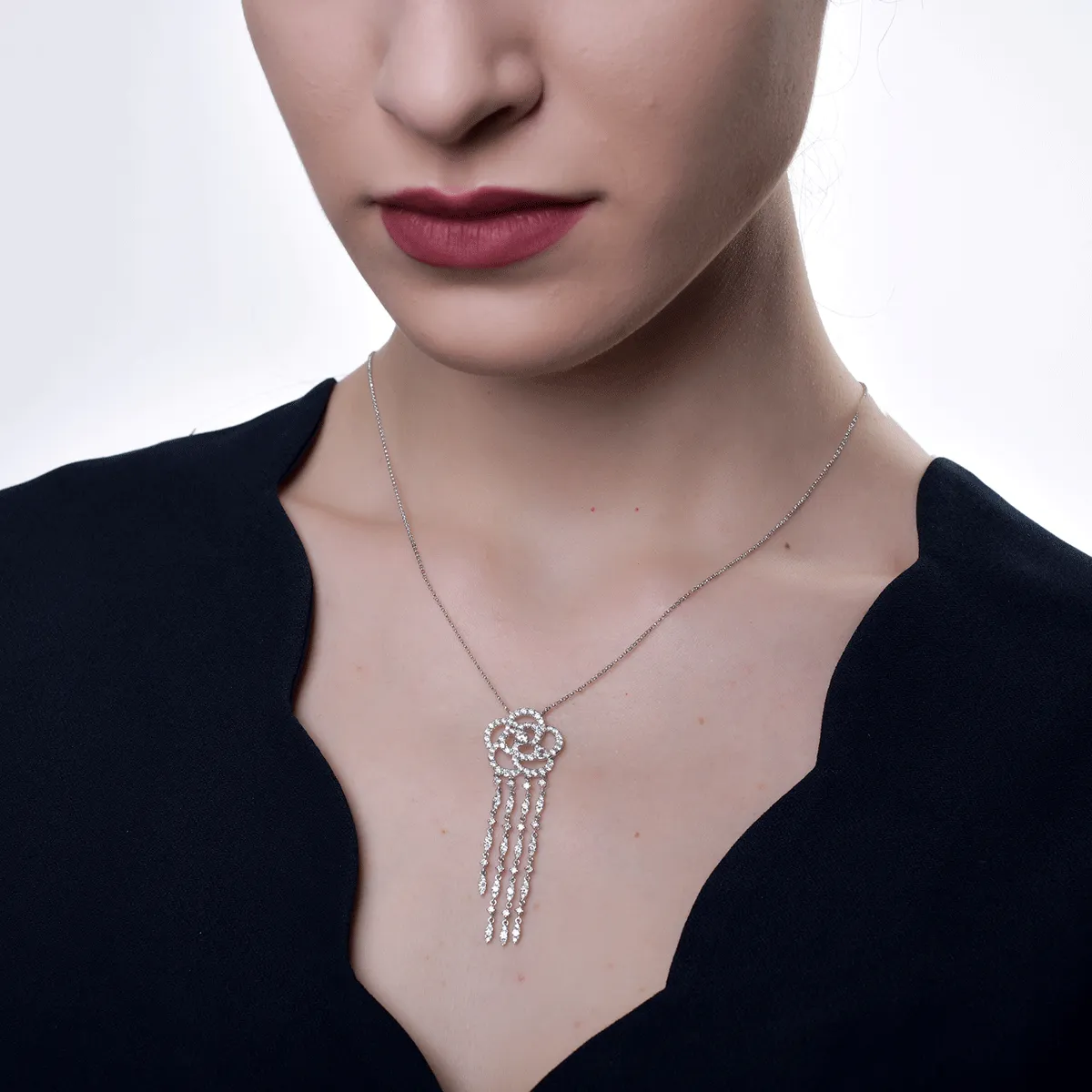 Lant cu pandantiv din aur alb cu diamante de 1.71ct
