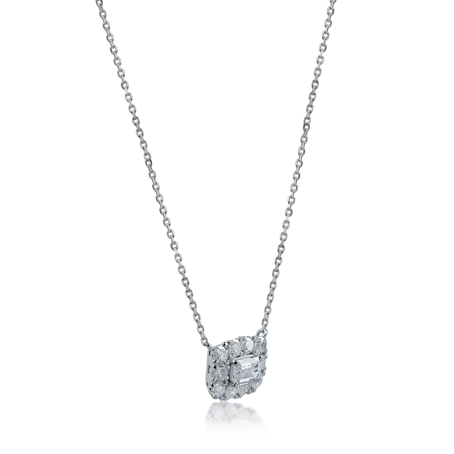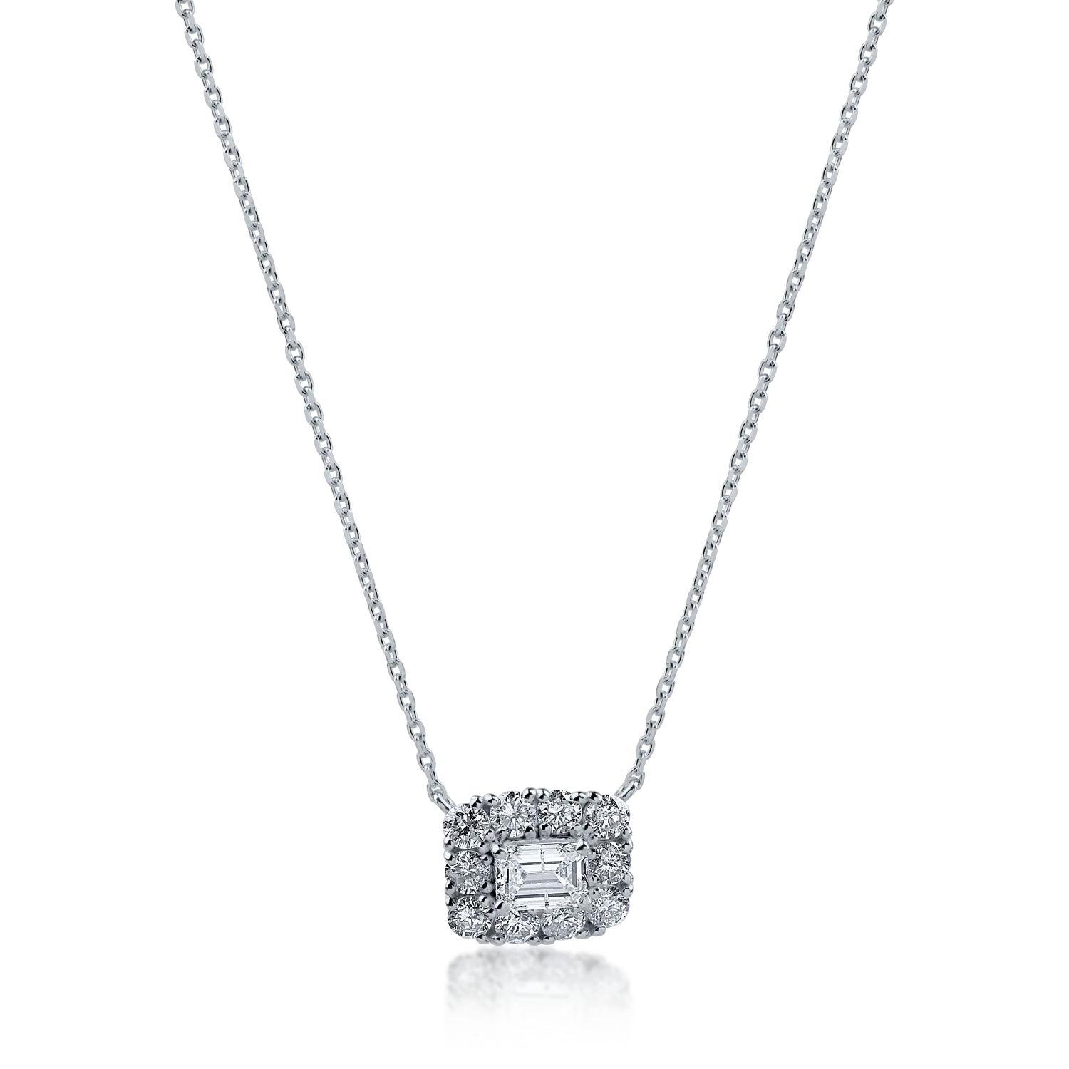 Lant cu pandantiv din aur alb cu diamante emerald si rotunde de 0.59ct