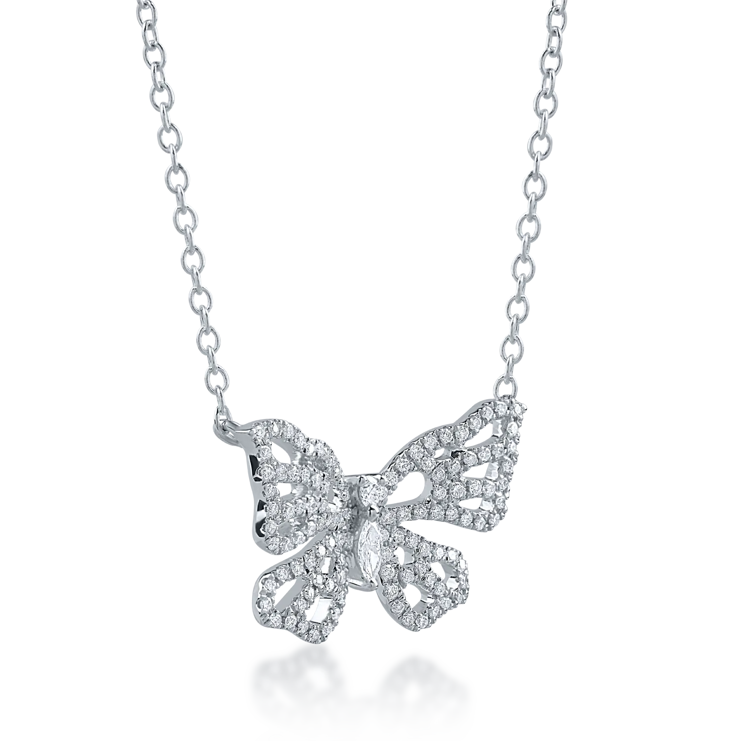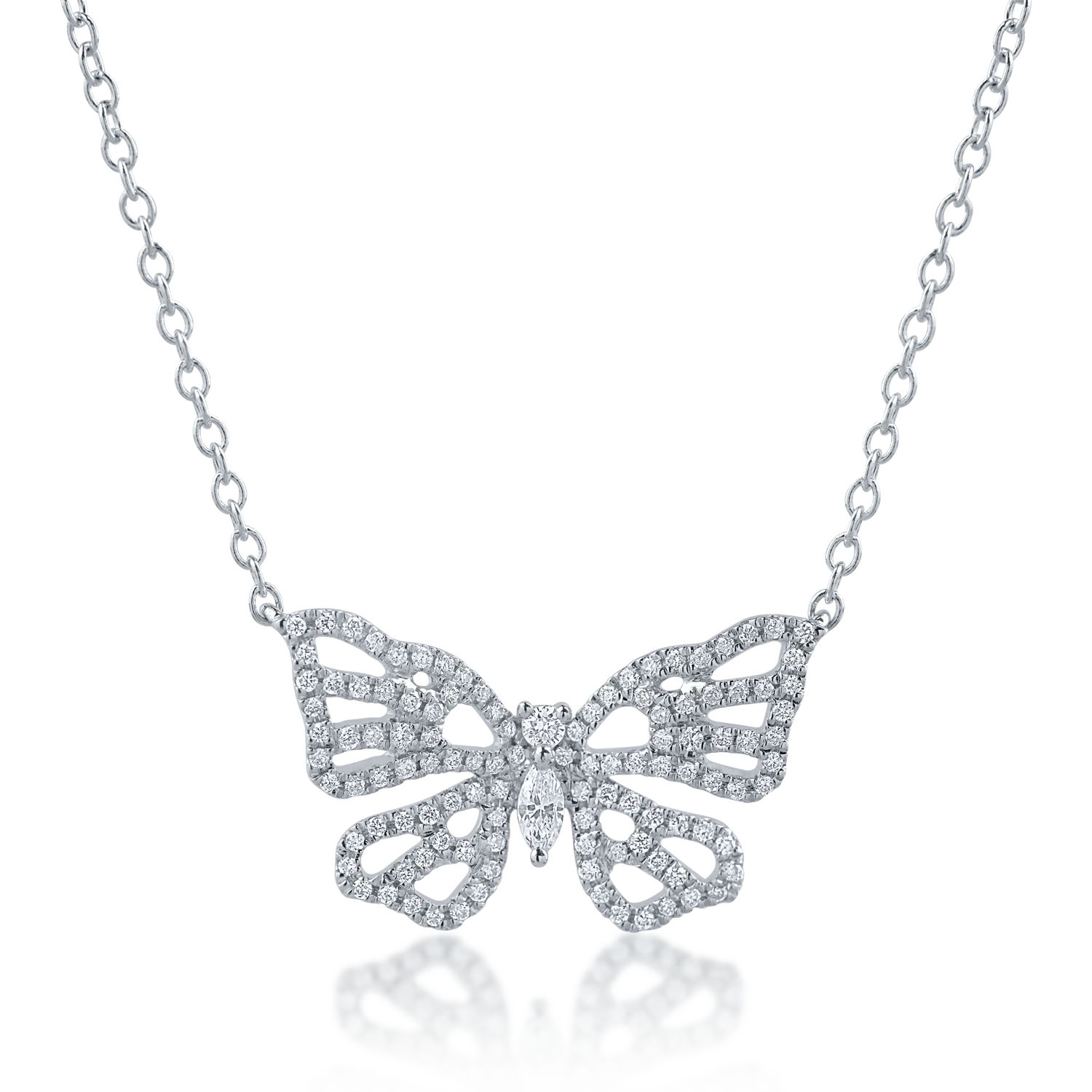 Lant cu pandantiv din aur alb cu diamante marquise si rotunde de 0.3ct