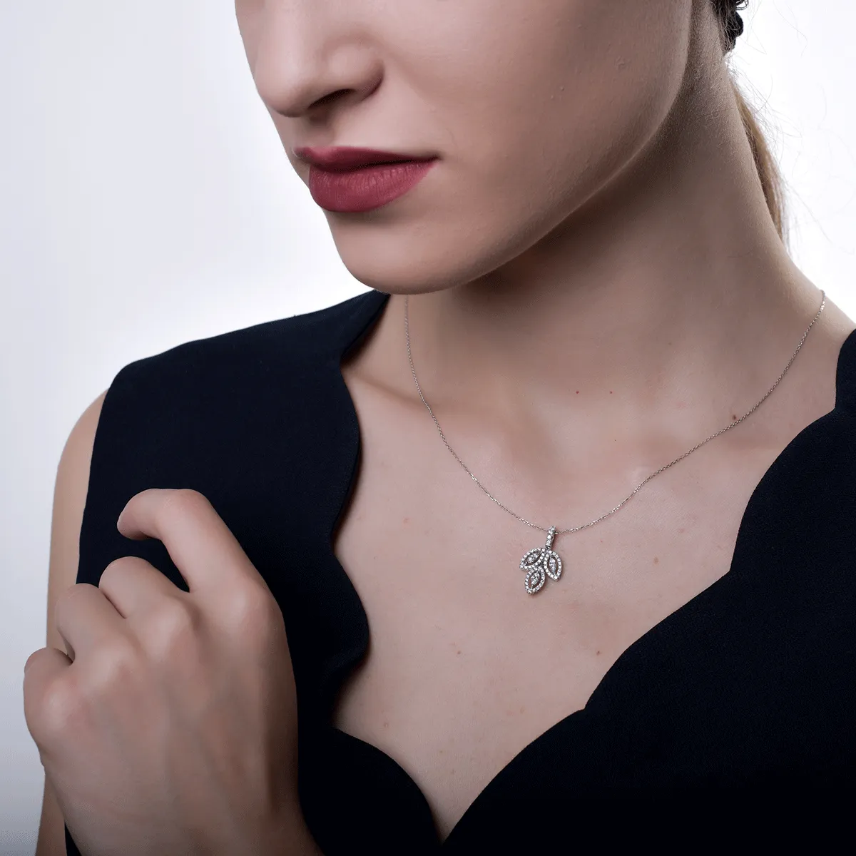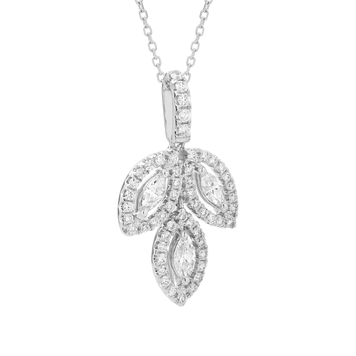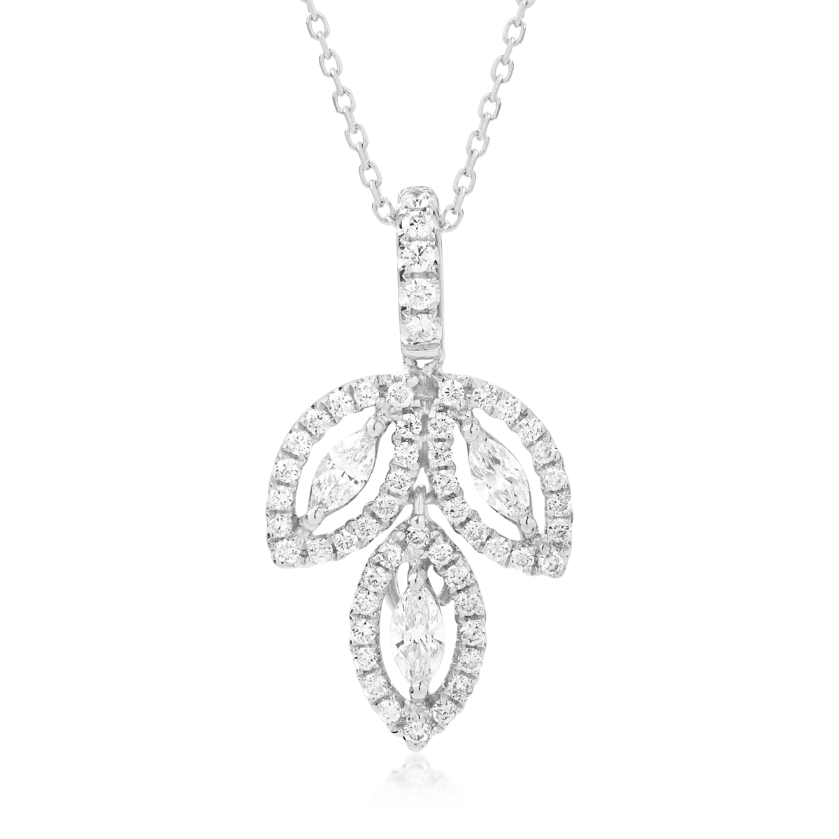 Lant cu pandantiv din aur alb cu diamante marquise si rotunde de 0.61ct