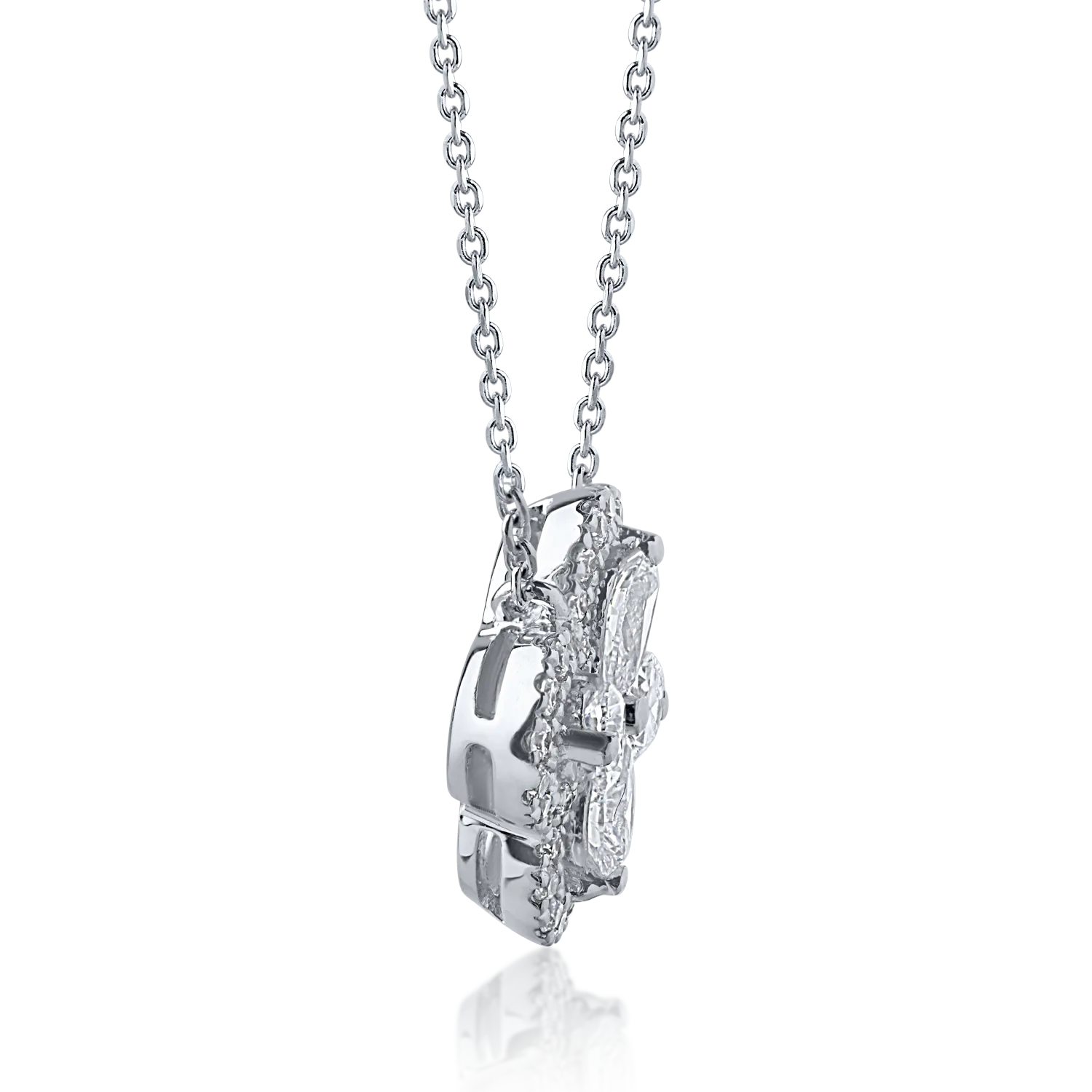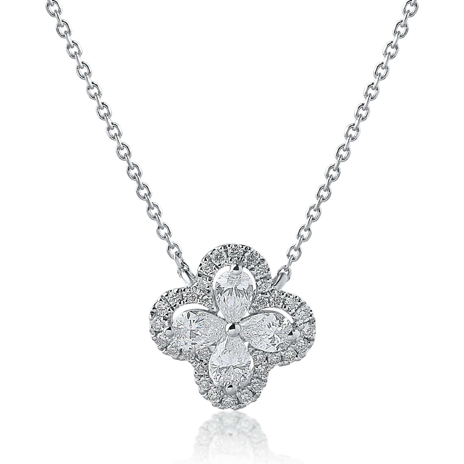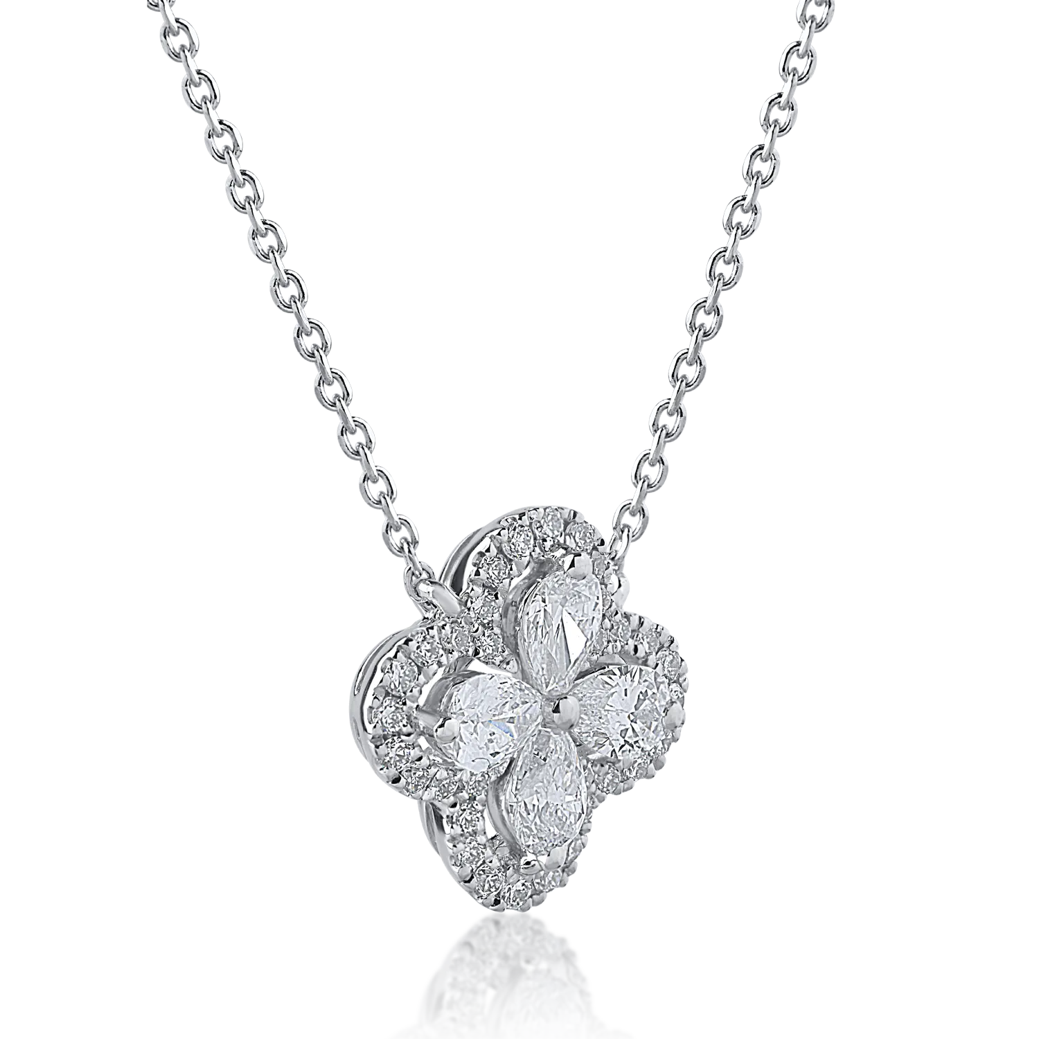 Lant cu pandantiv din aur alb cu diamante pear si rotunde de 0.44ct
