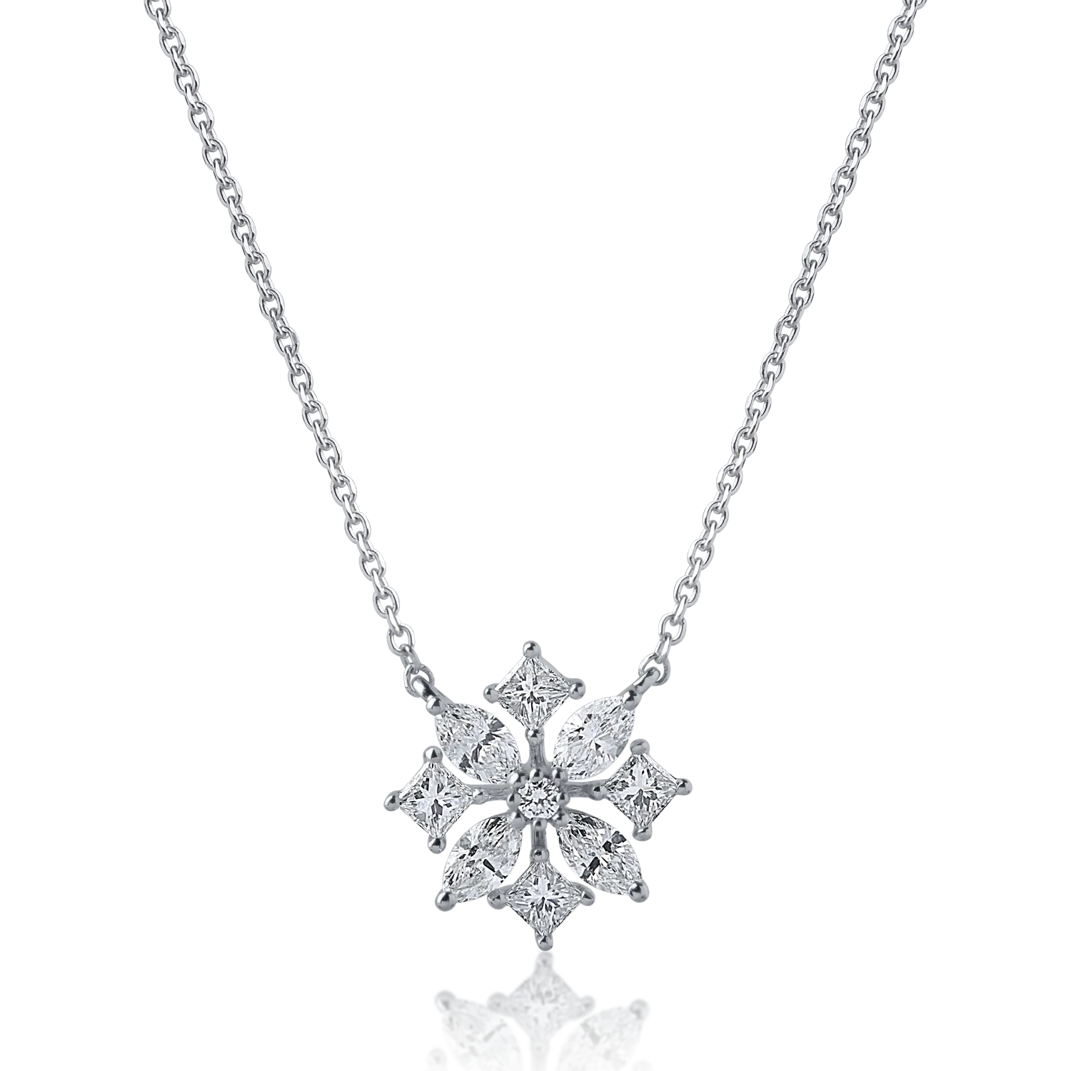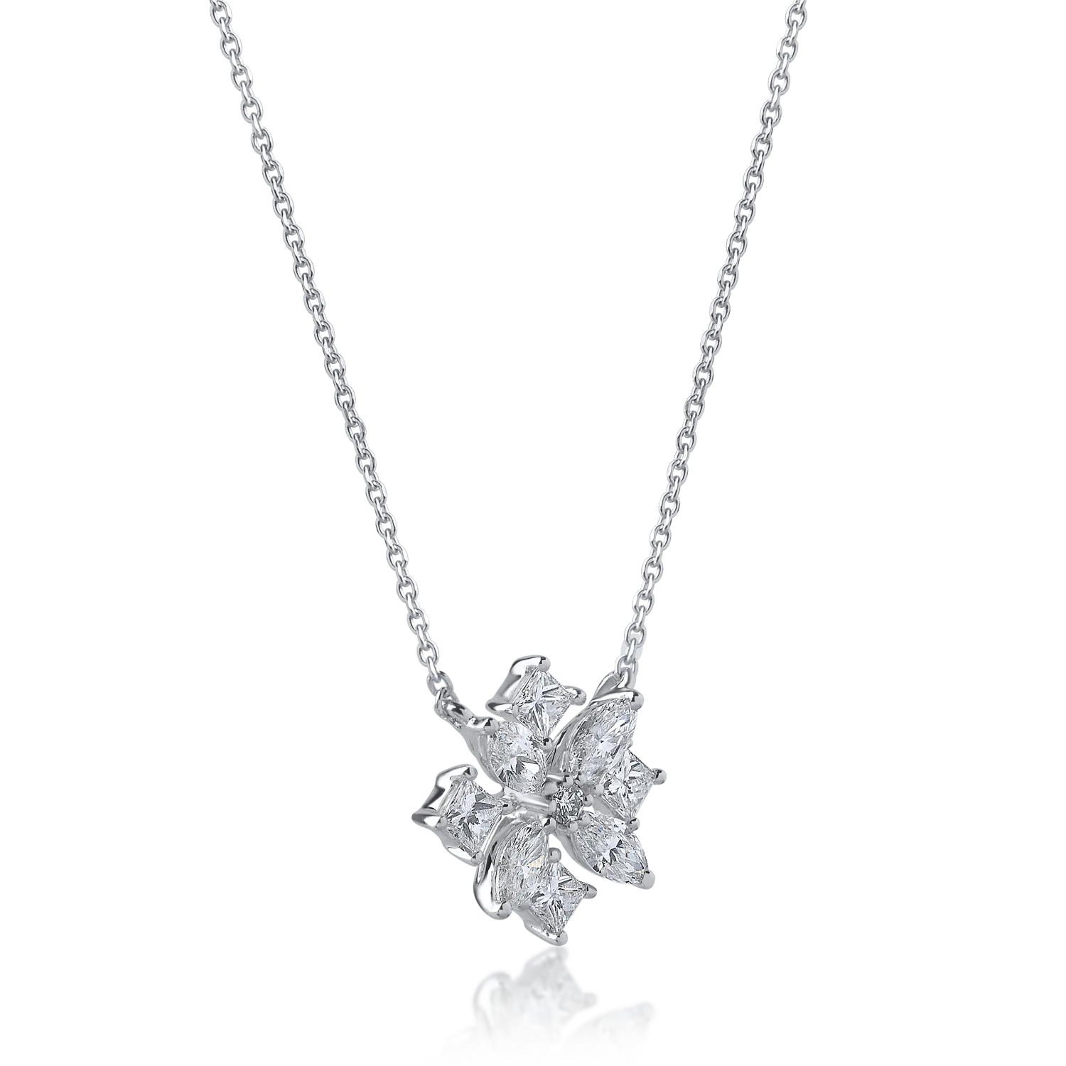 Lant cu pandantiv din aur alb cu diamante princess, marquise si rotunde de 0.5ct