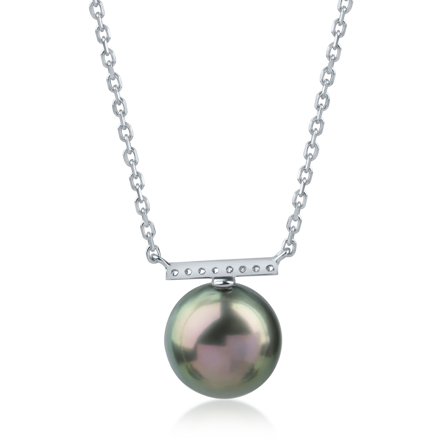 Lant cu pandantiv din aur alb cu perla de cultura si diamante de 0.04ct