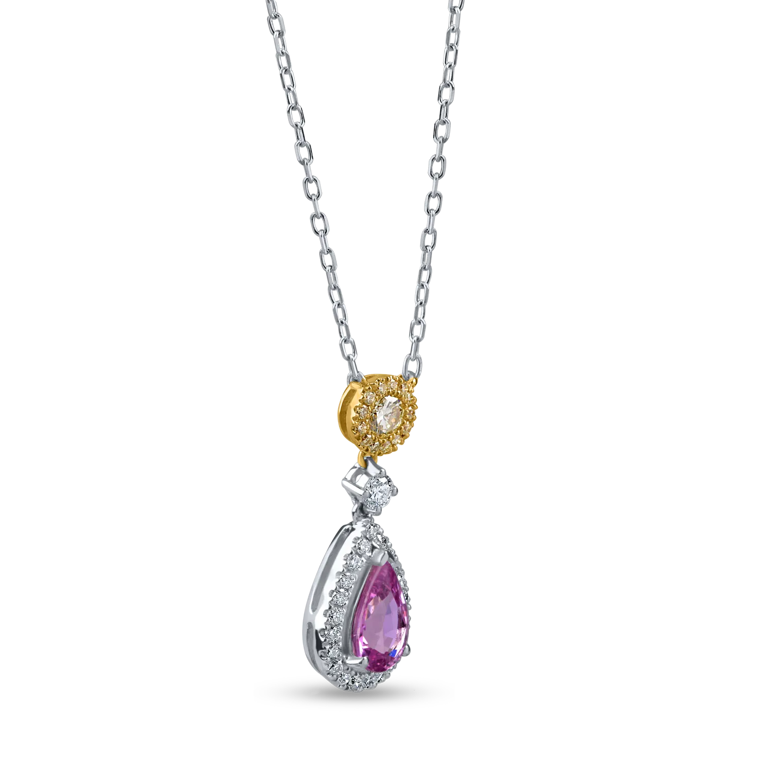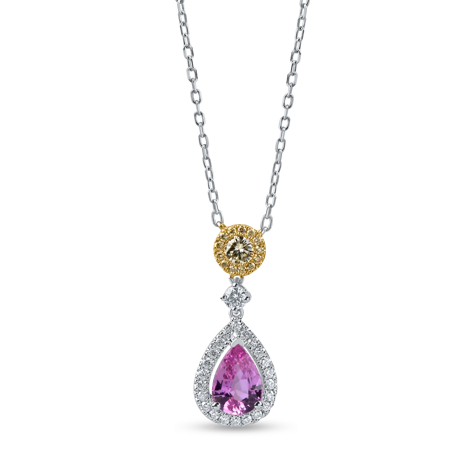 Lant cu pandantiv din aur alb cu pietre pretioase de 1ct