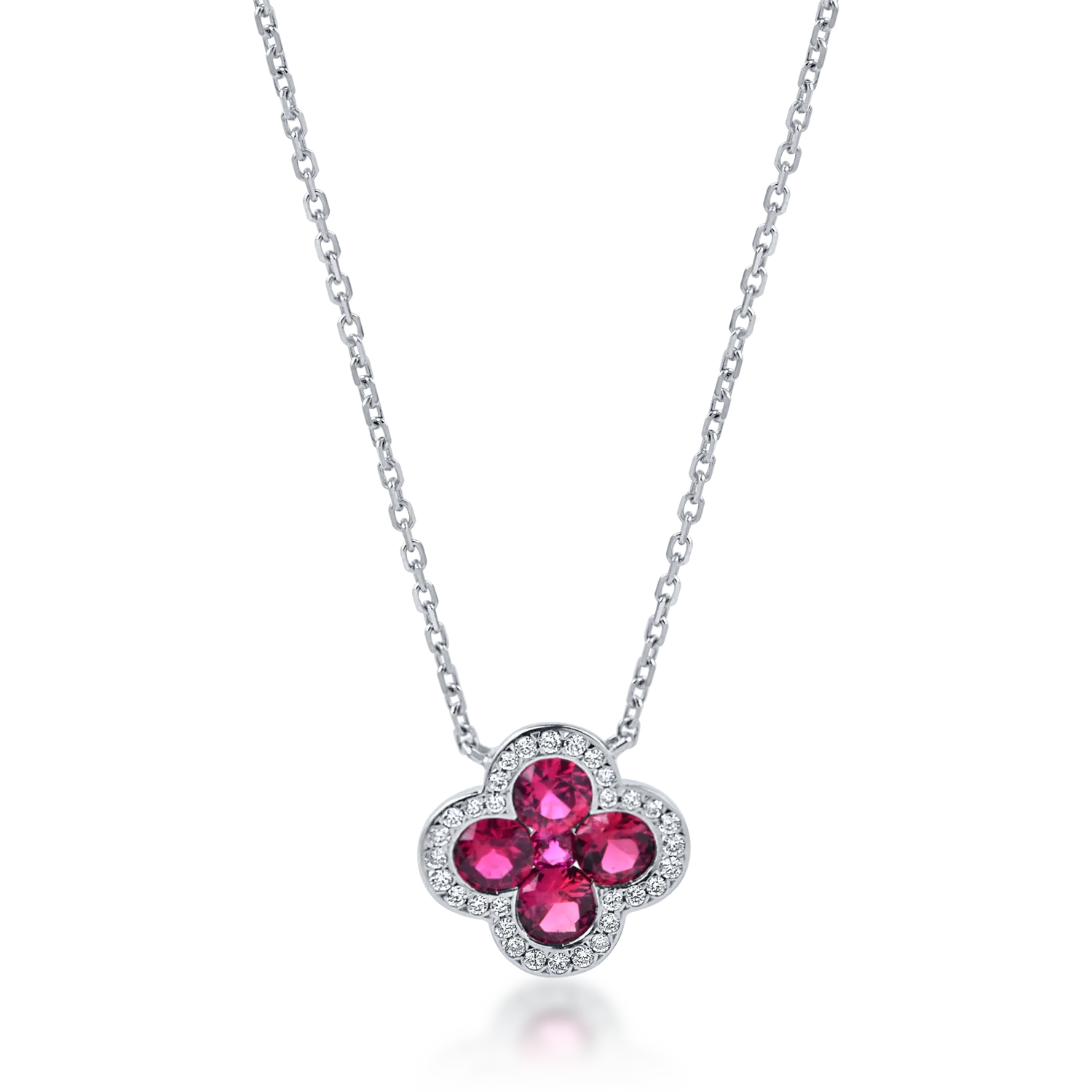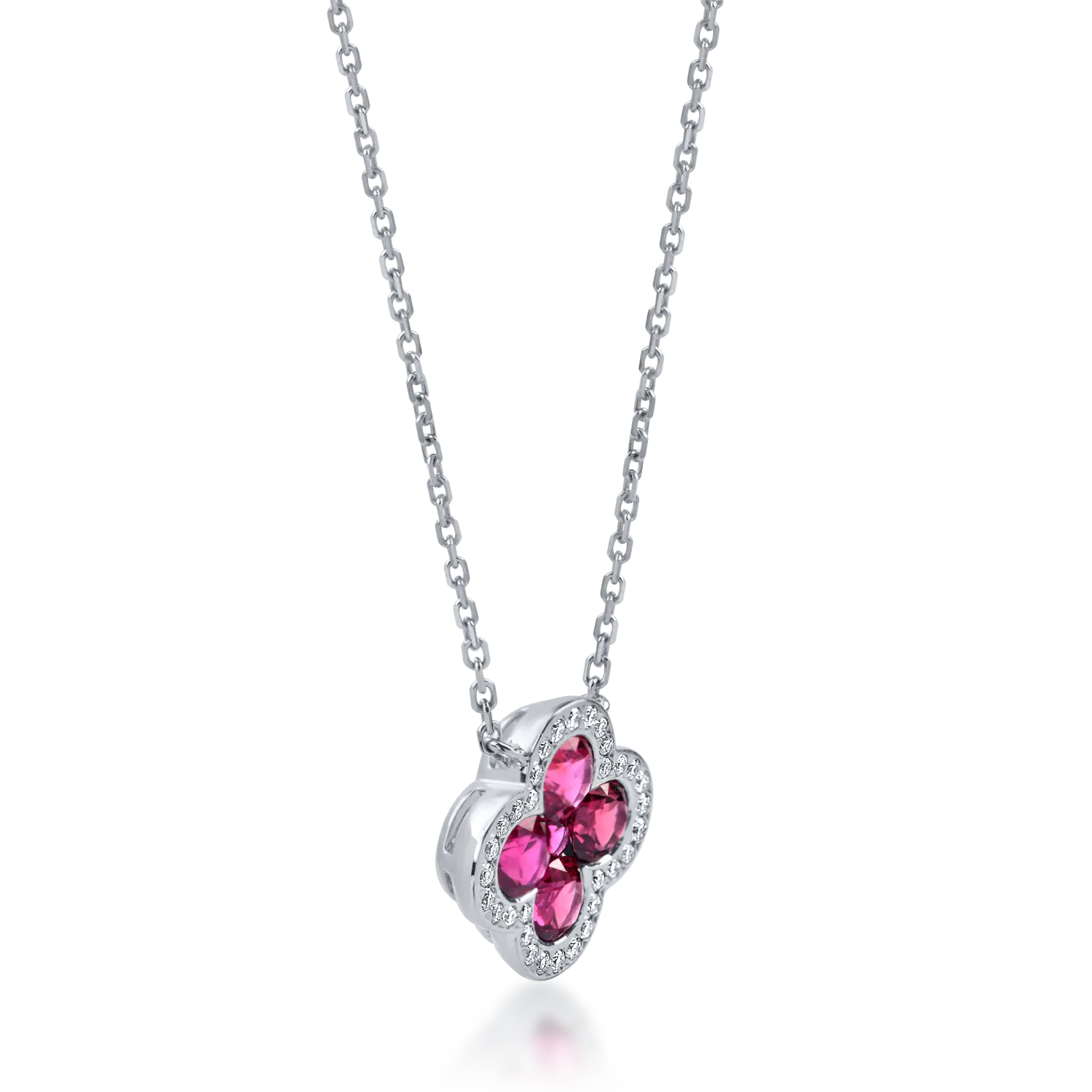 Lant cu pandantiv din aur alb cu rubine si diamante de 0.9ct