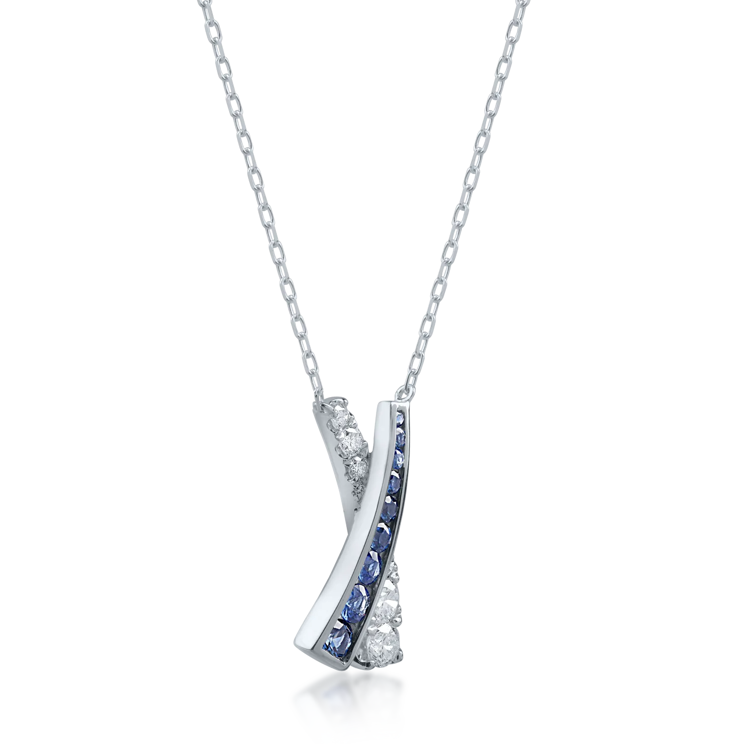 Lant cu pandantiv din aur alb cu safire de 0.43ct si diamante de 0.36ct