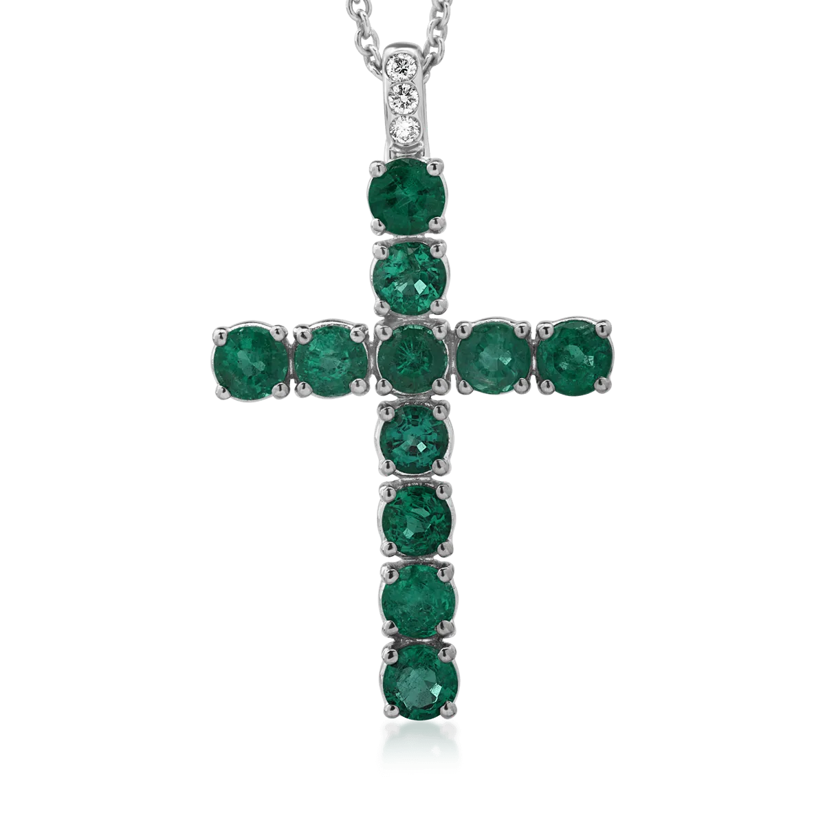 Lant cu pandantiv din aur alb cu smaralde de 2.7ct si diamante de 0.05ct