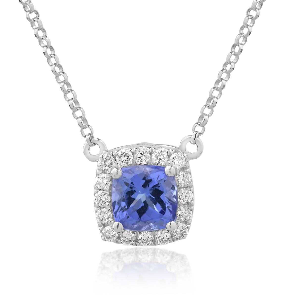 Lant cu pandantiv din aur alb cu tanzanit de 1.16ct si diamante de 0.21ct