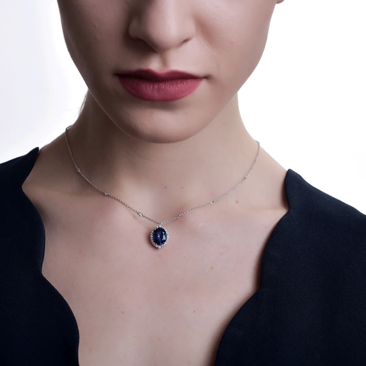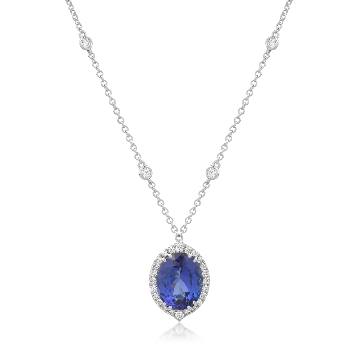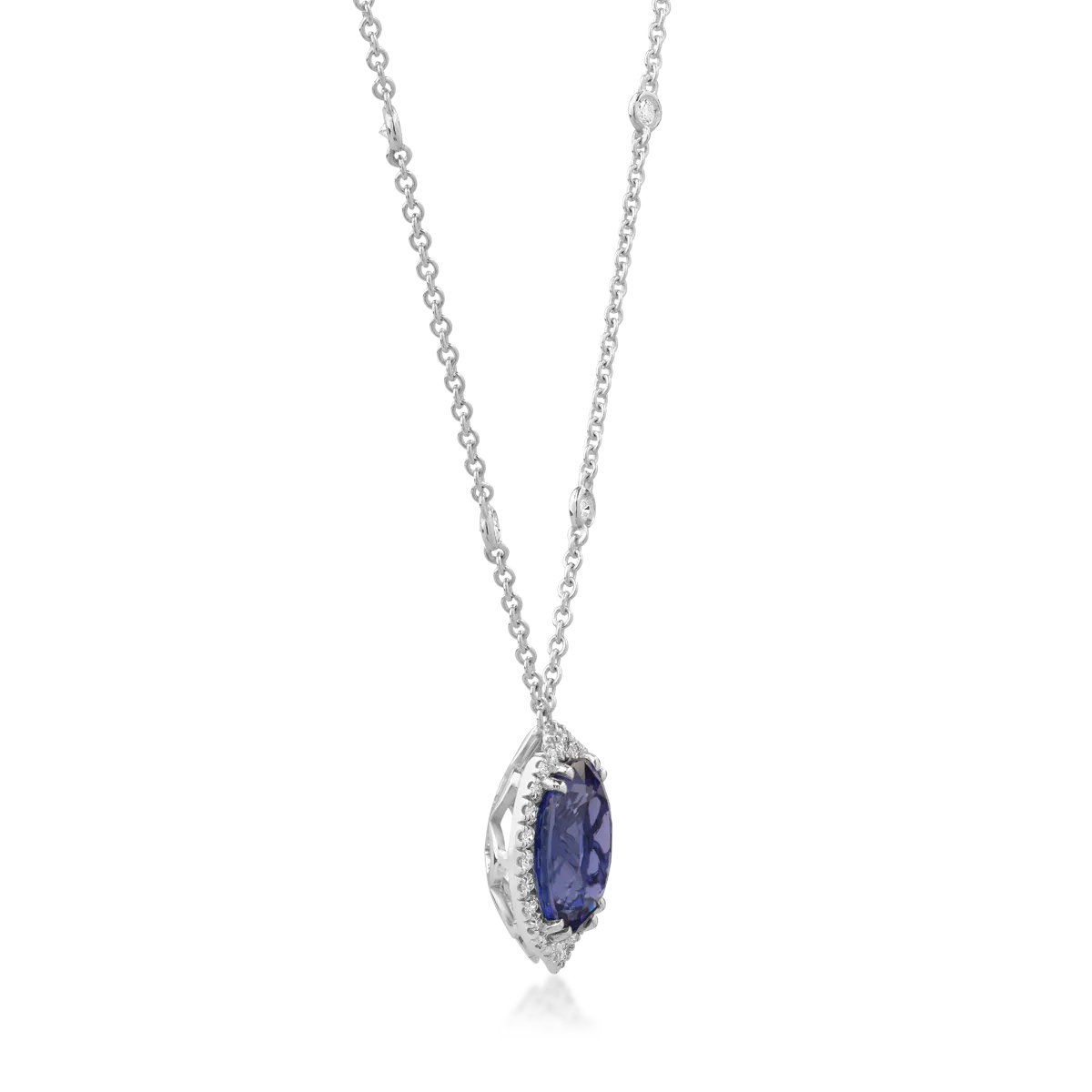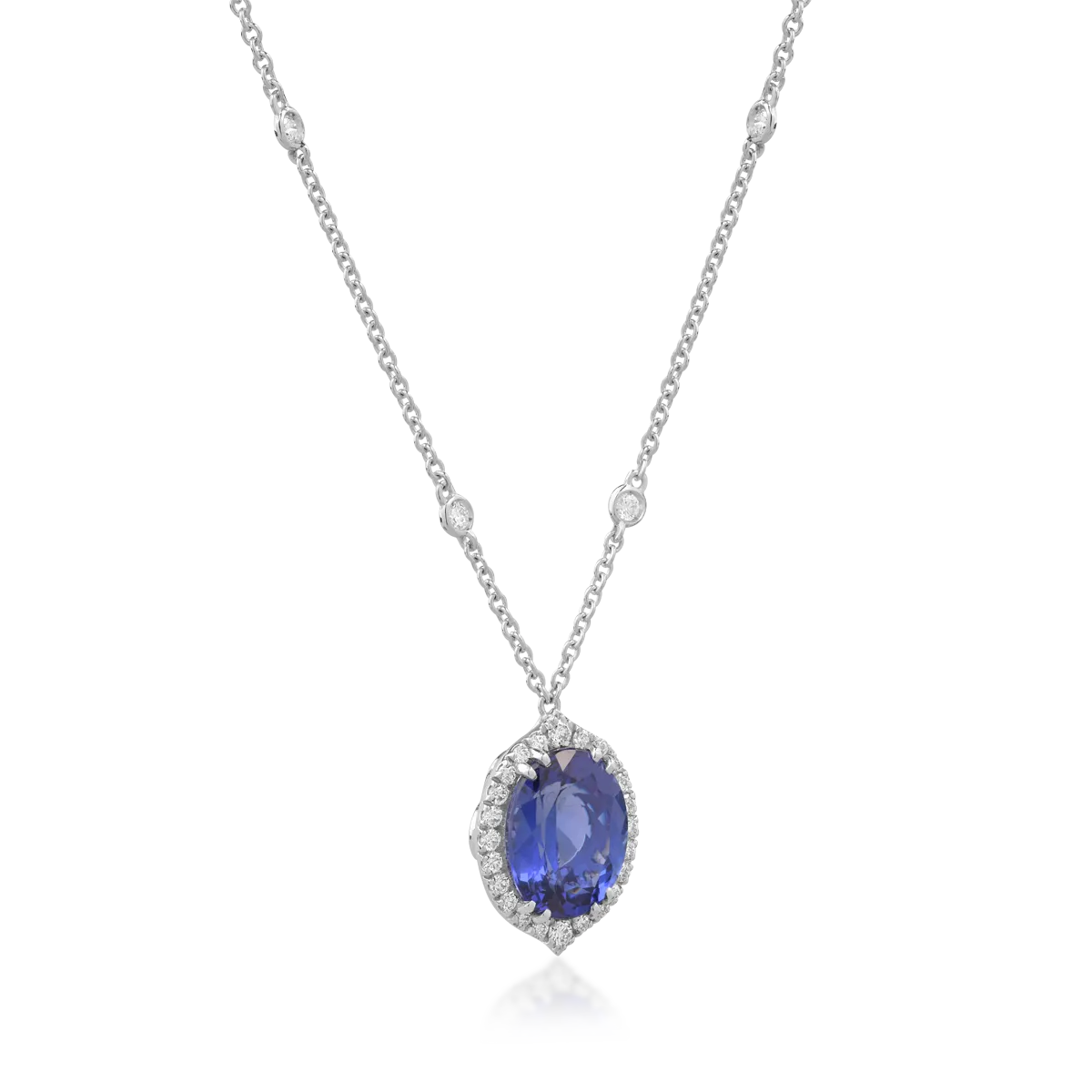 Lant cu pandantiv din aur alb cu tanzanit oval de 4.2ct si diamante de 0.5ct