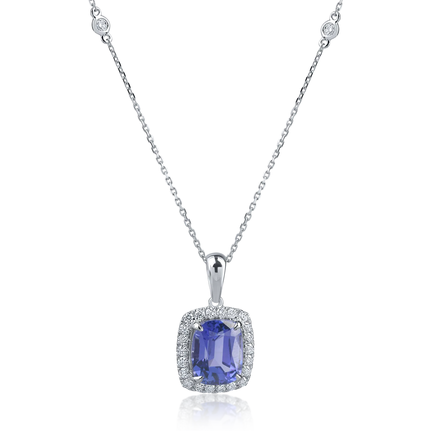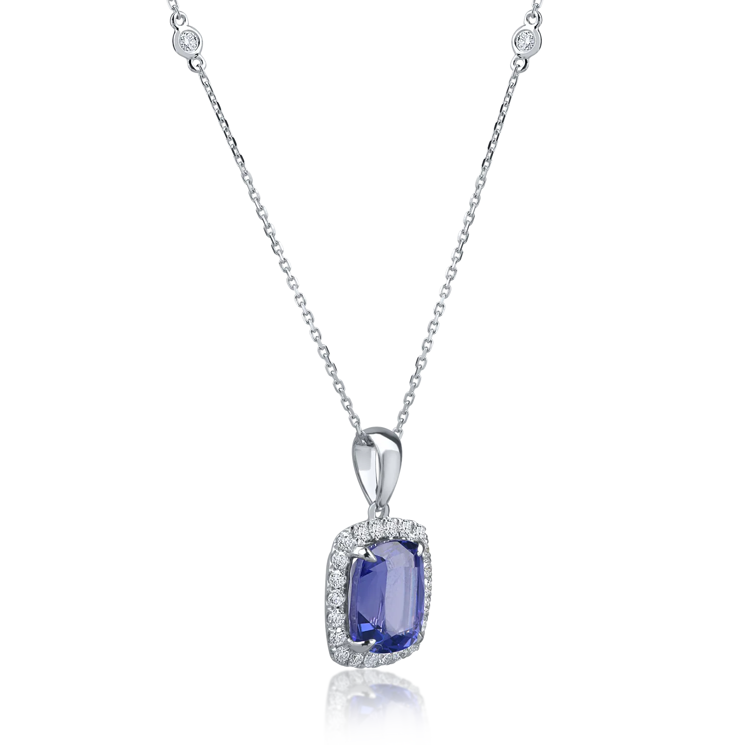 Lant cu pandantiv din aur alb cu tanzanit rectangular de 4.76ct si diamante de 0.45ct
