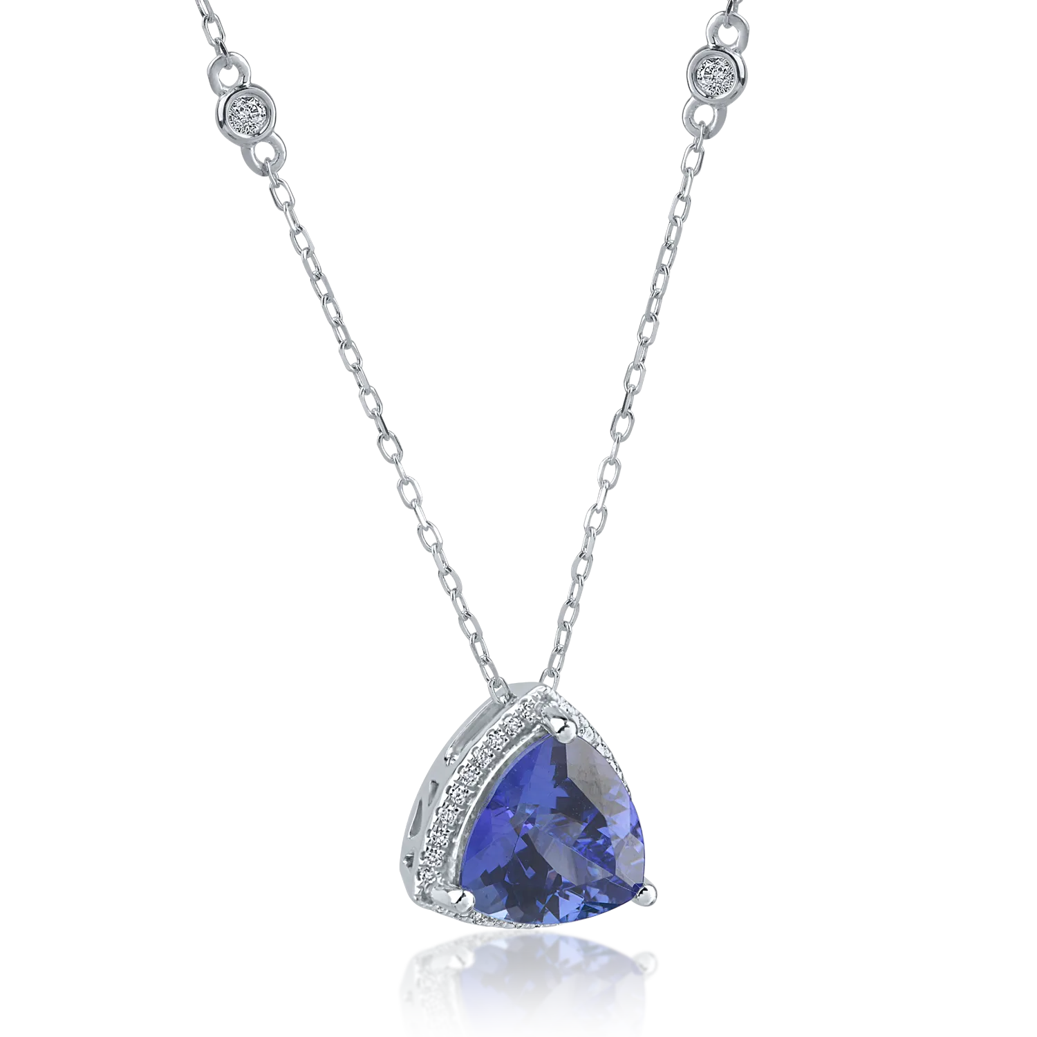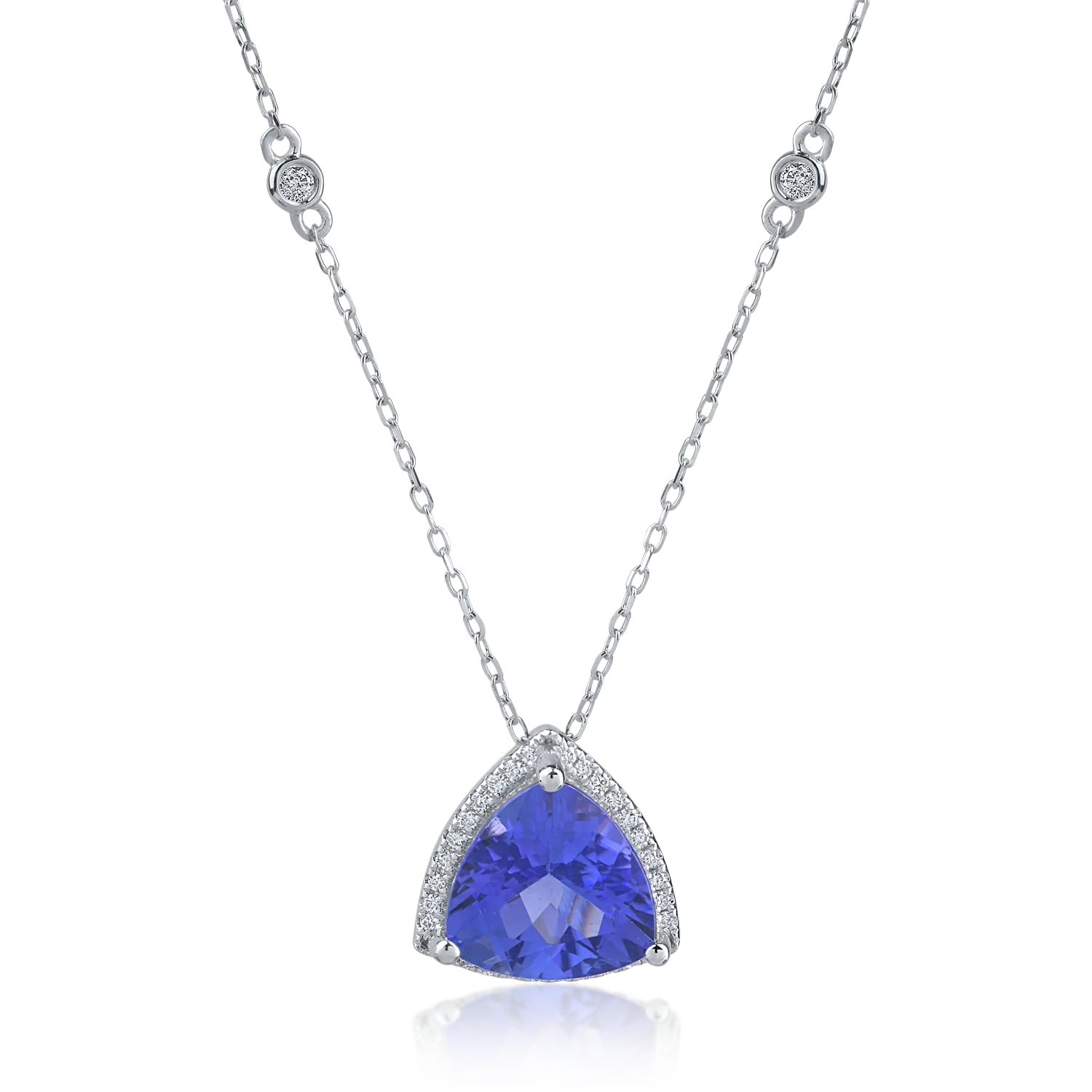 Lant cu pandantiv din aur alb cu tanzanit trillion de 3.26ct si diamante de 0.17ct