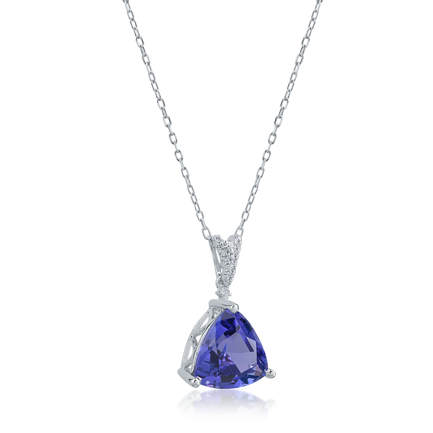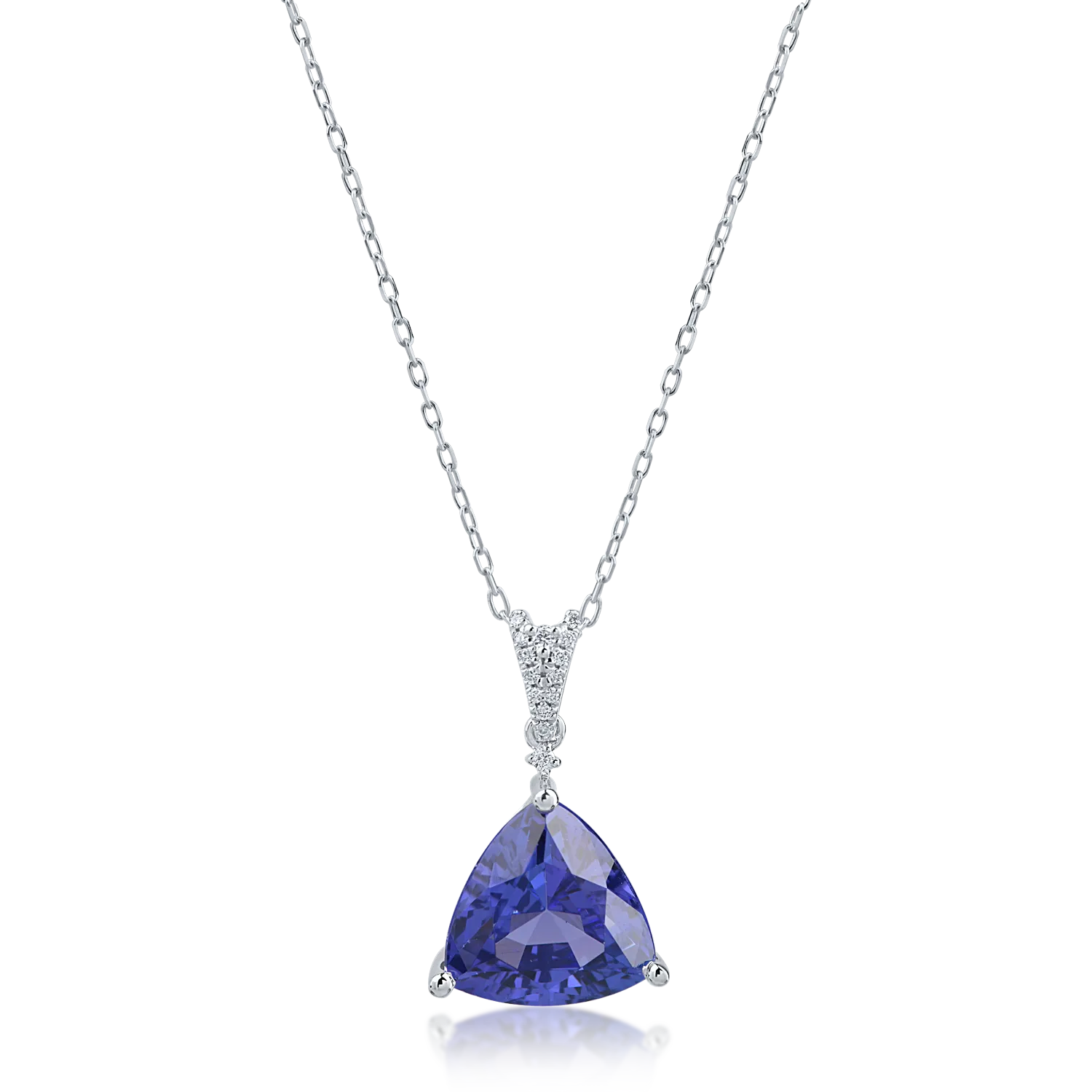 Lant cu pandantiv din aur alb cu tanzanit trillion de 4.46ct si diamante de 0.05ct