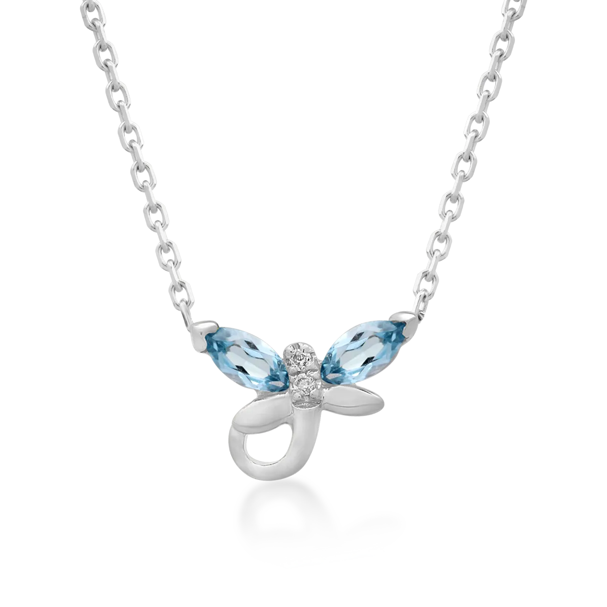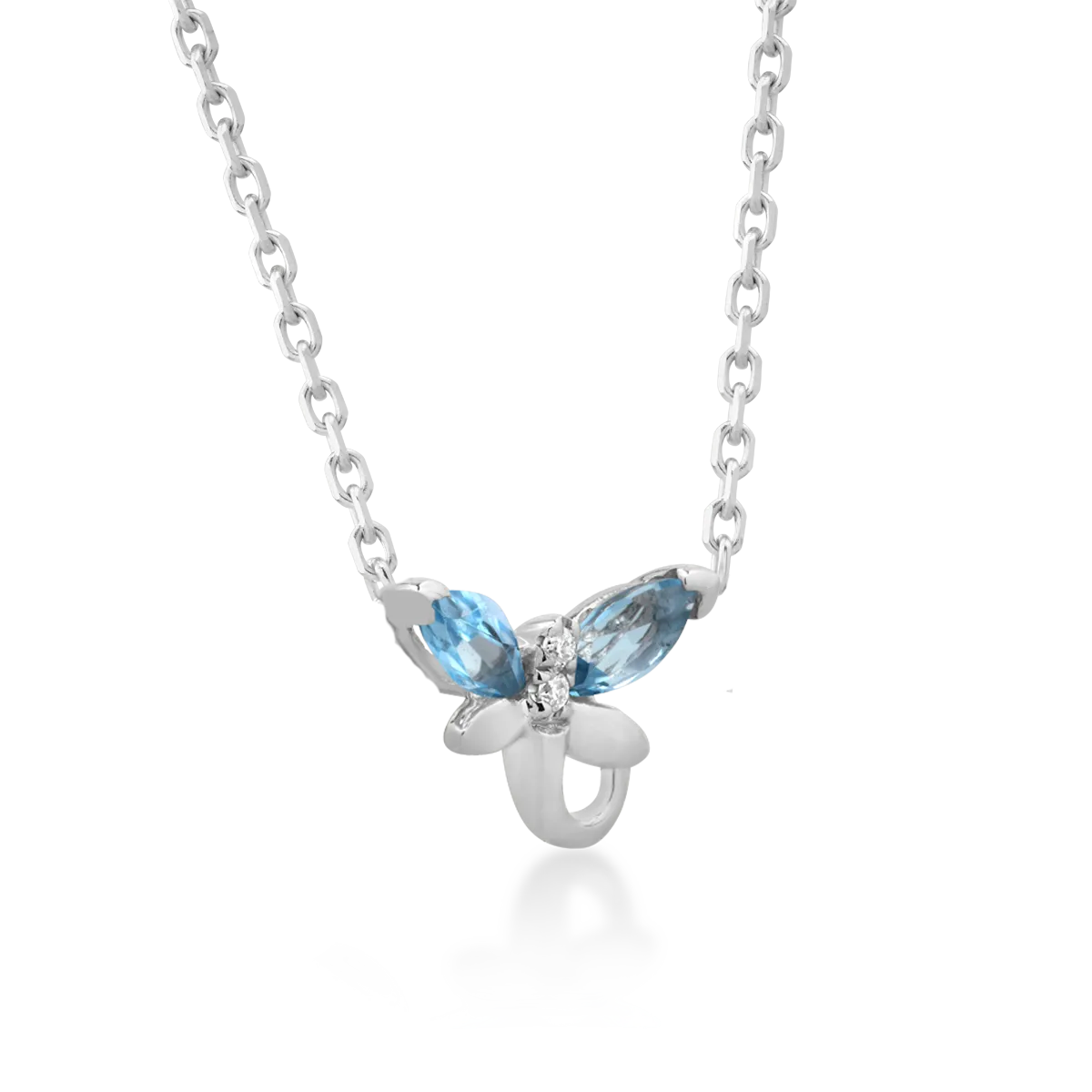 Lant cu pandantiv din aur alb cu topaze albastre marquise de 0.3ct si diamante de 0.008ct pentru copii