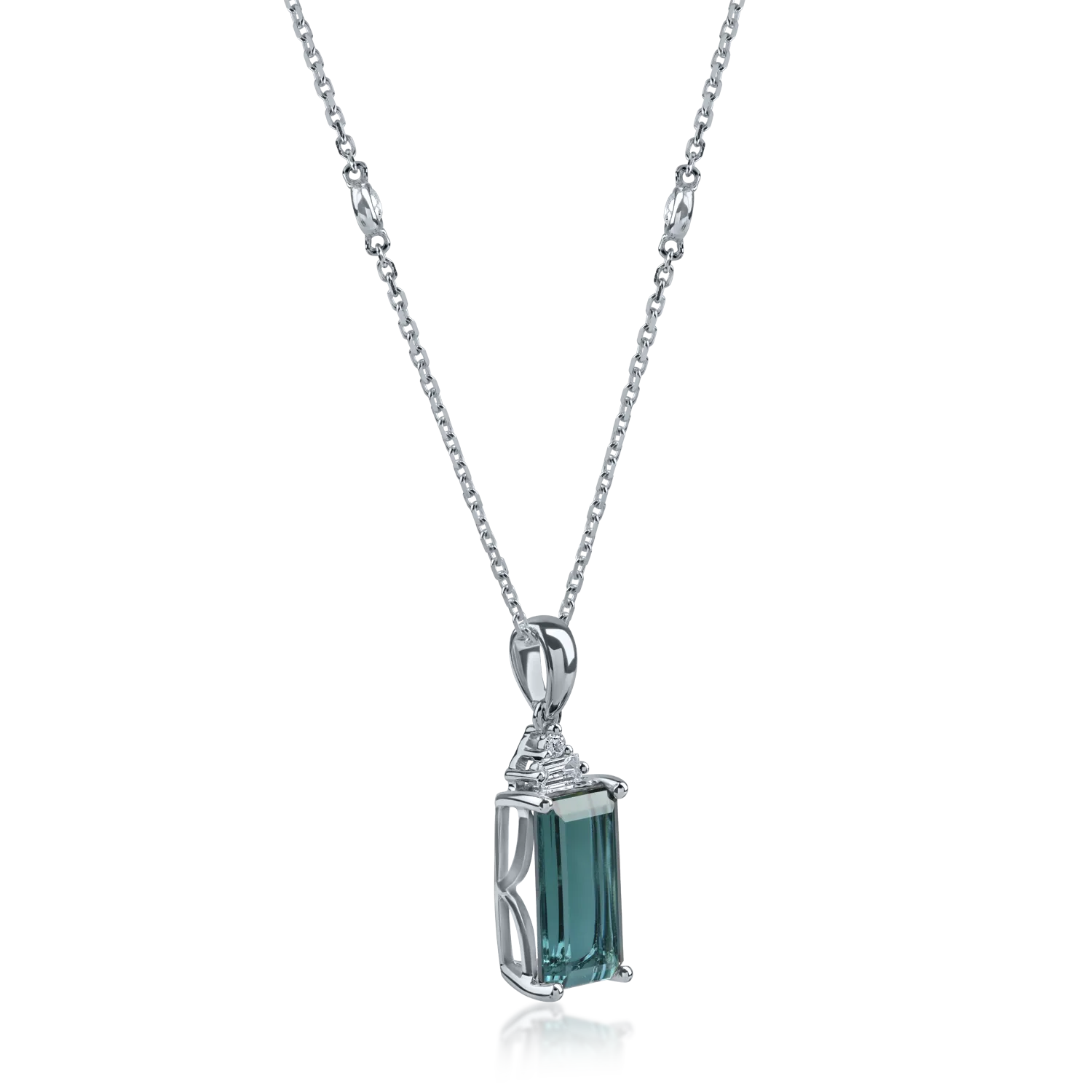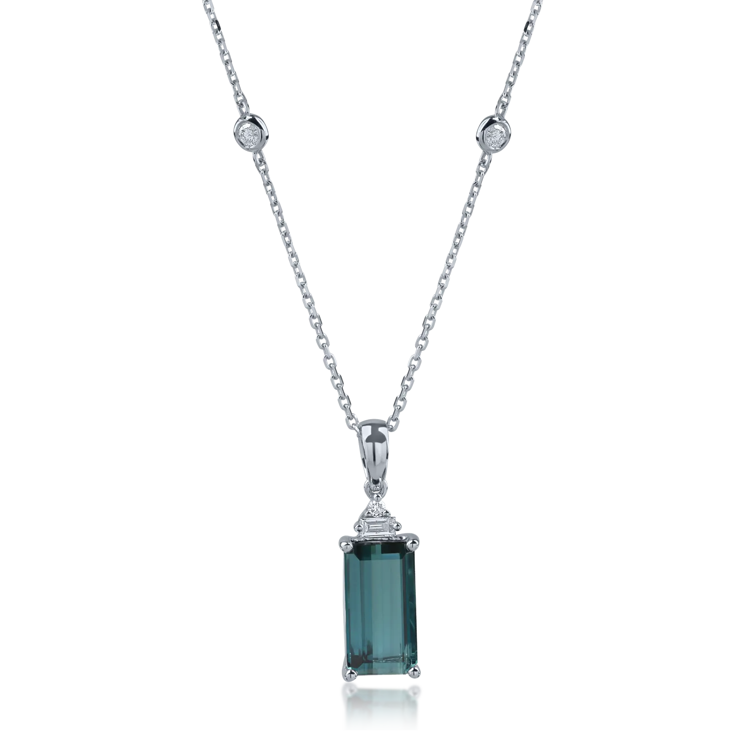 Lant cu pandantiv din aur alb cu turmalina rectangulara de 2.58ct si diamante baguette si rotunde de 0.11ct