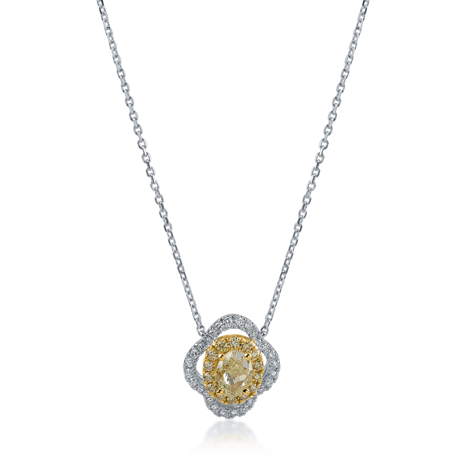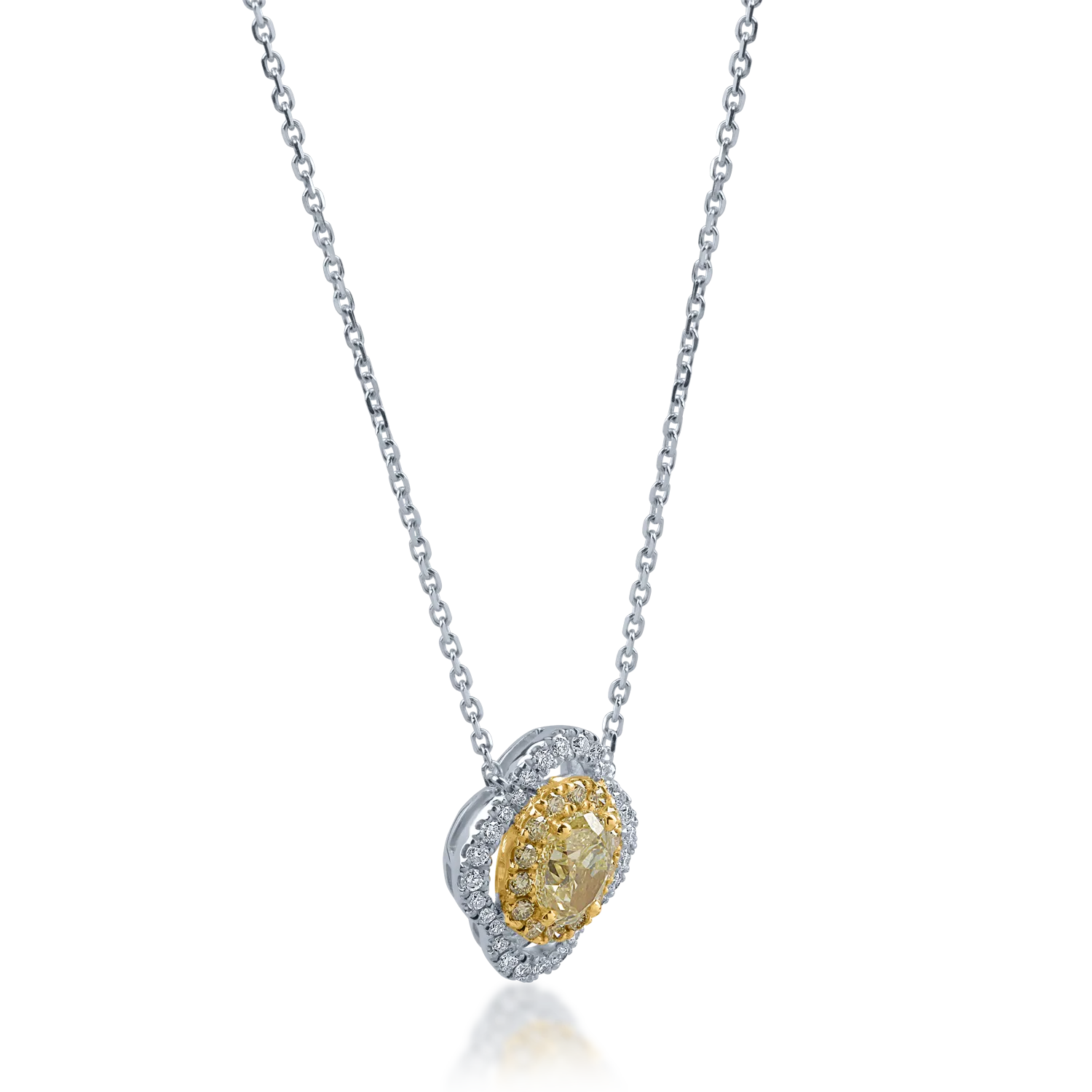 Lant cu pandantiv din aur alb-galben cu diamant fancy galben oval de 0.7ct si diamante galbene si incolore de 0.3ct