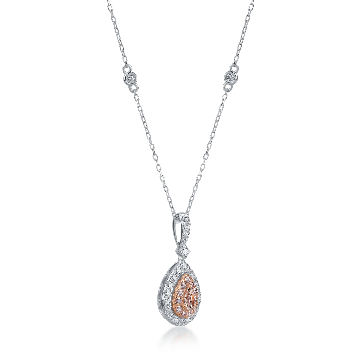 Lant cu pandantiv din aur alb-roz cu diamante incolore de 0.31ct si diamante roz pear si rotunde de 0.25ct