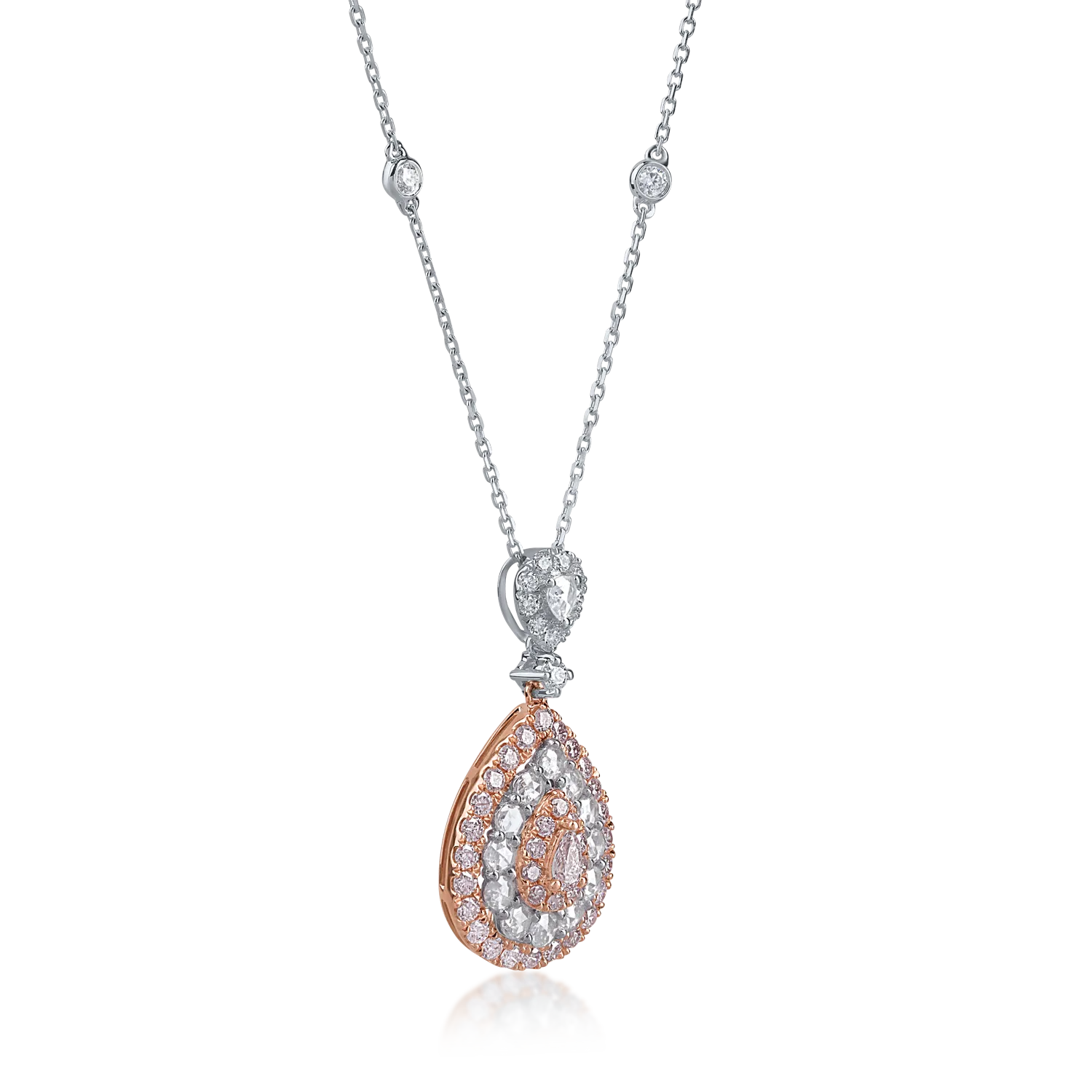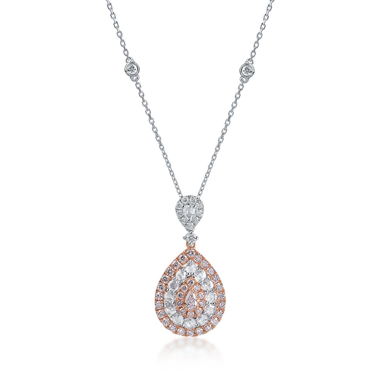 Lant cu pandantiv din aur alb-roz cu diamante roz pear si rotunde de 0.66ct si diamante incolore rose si rotunde de 0.5ct