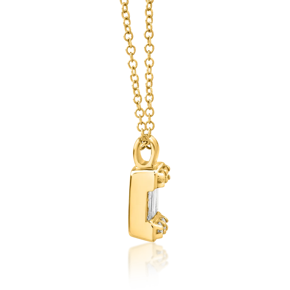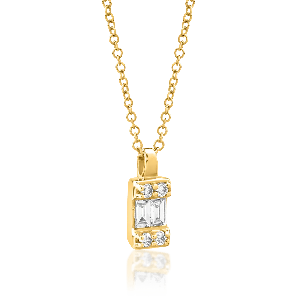 Lant cu pandantiv din aur galben cu diamante baguette si rotunde de 0.083ct