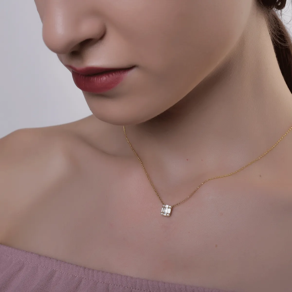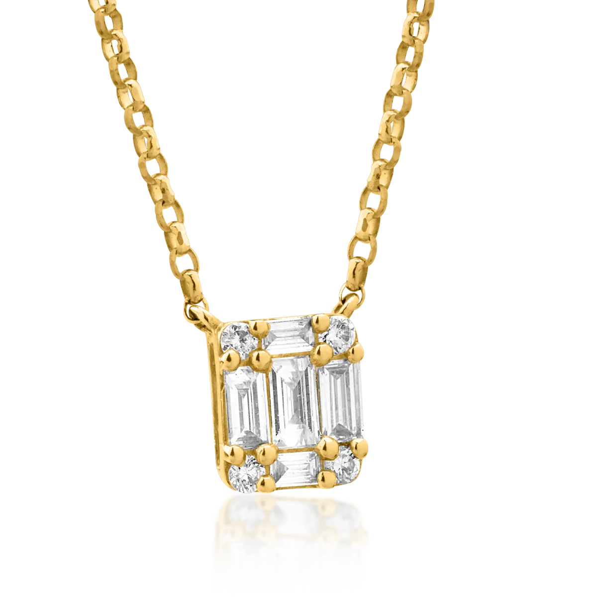 Lant cu pandantiv din aur galben cu diamante baguette si rotunde de 0.27ct