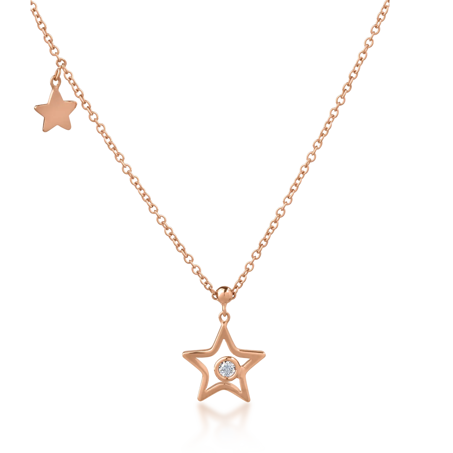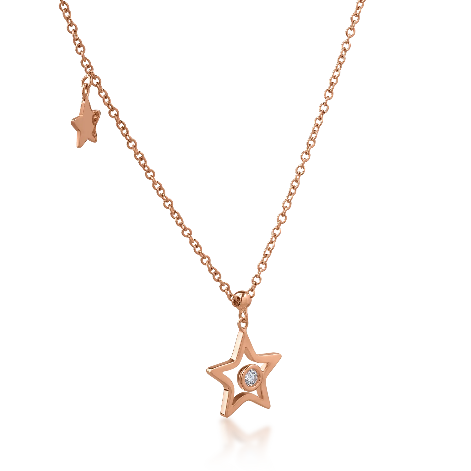 Lant cu pandantiv din aur roz cu diamant de 0.05ct