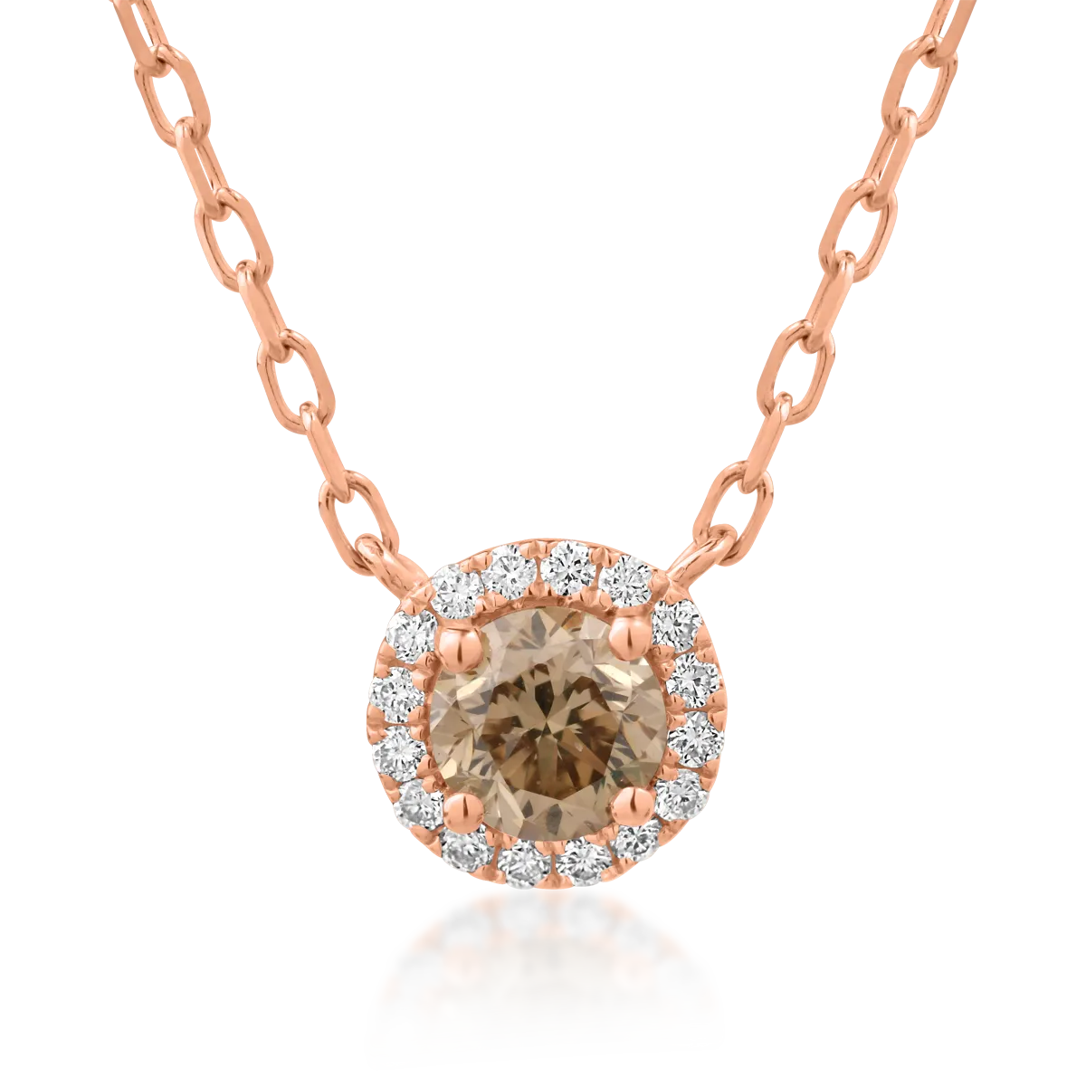 Lant cu pandantiv din aur roz cu diamant maro de 0.31ct si diamante transparente de 0.05ct