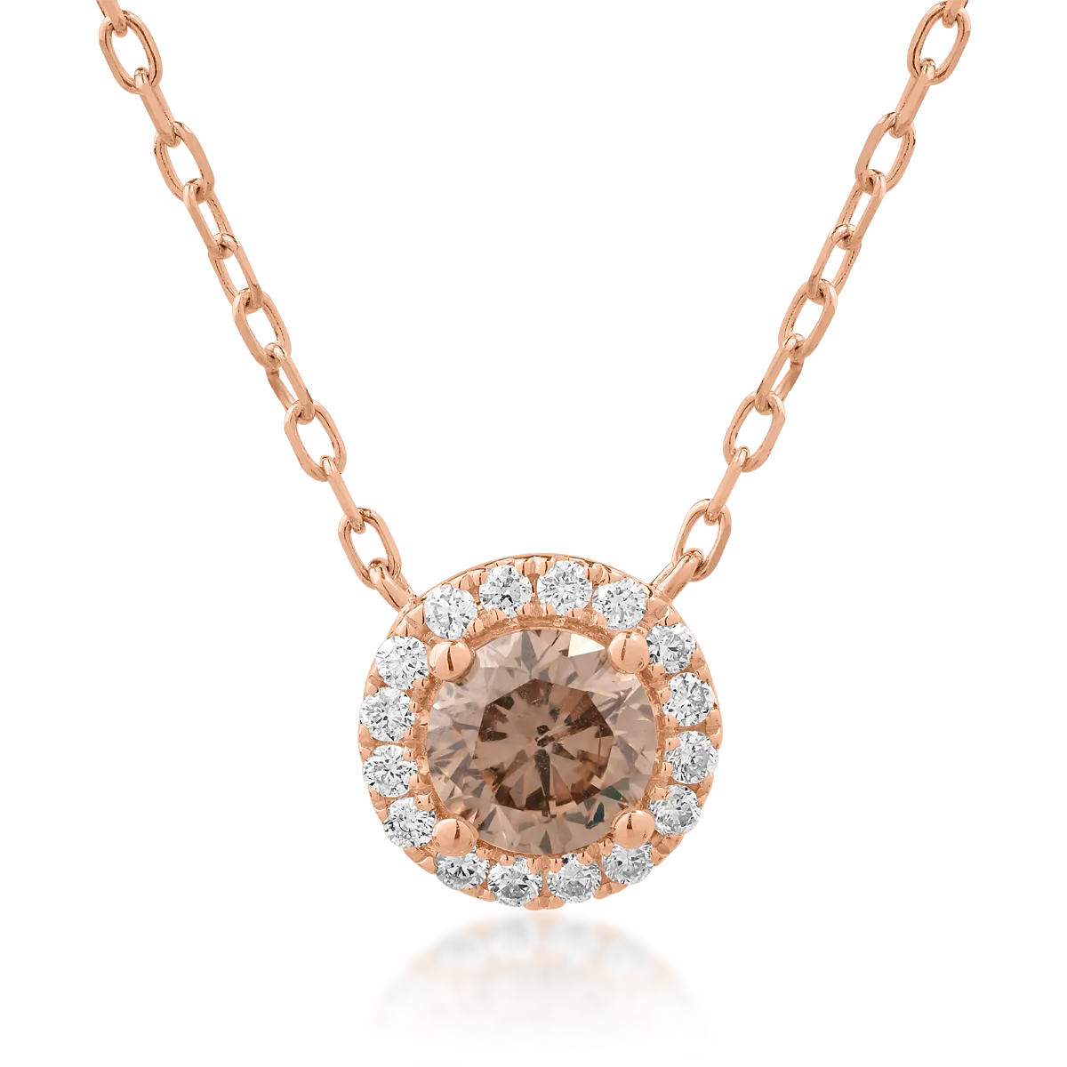 Lant cu pandantiv din aur roz cu diamant maro de 0.51ct si diamante transparente de 0.08ct