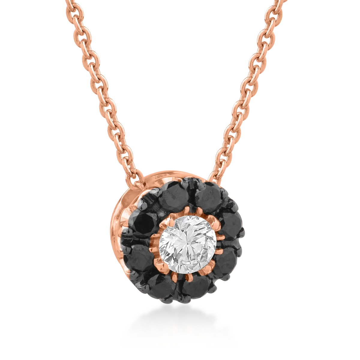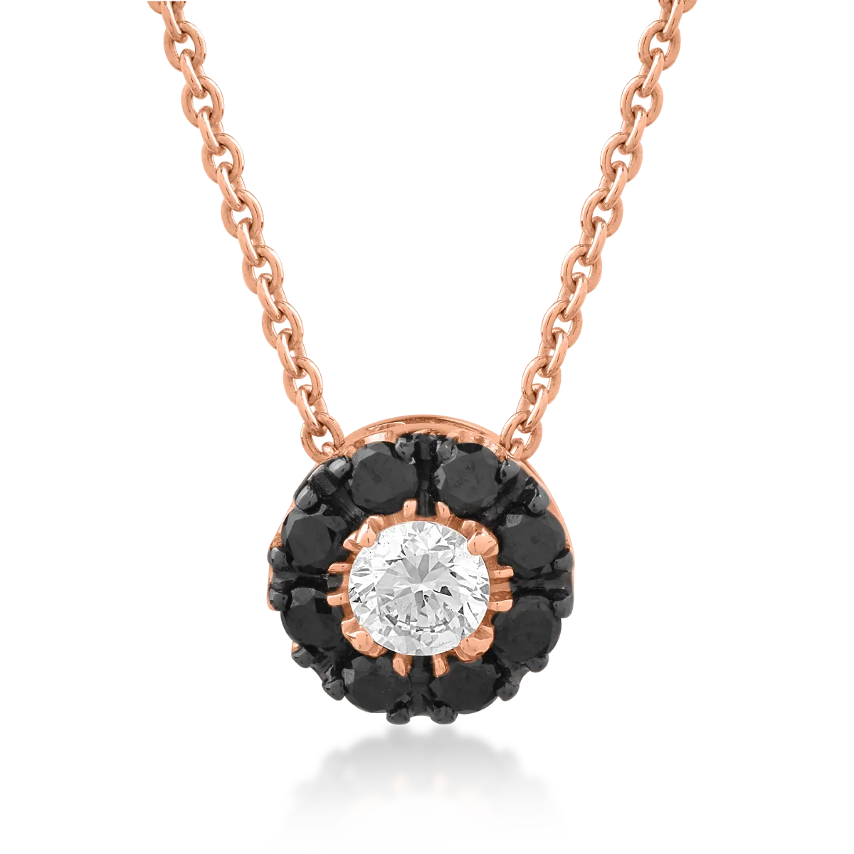 Lant cu pandantiv din aur roz cu diamant transparent de 0.17ct si diamante negre de 0.22ct