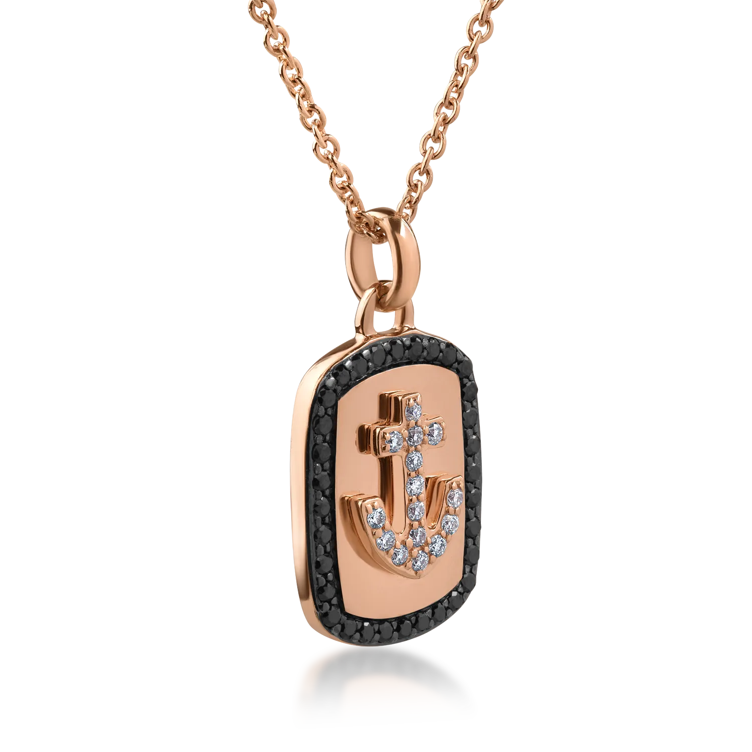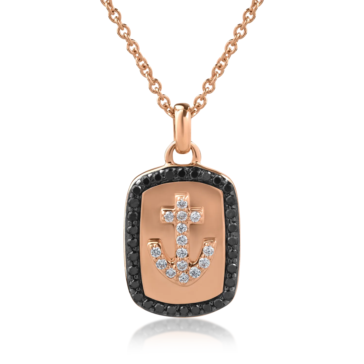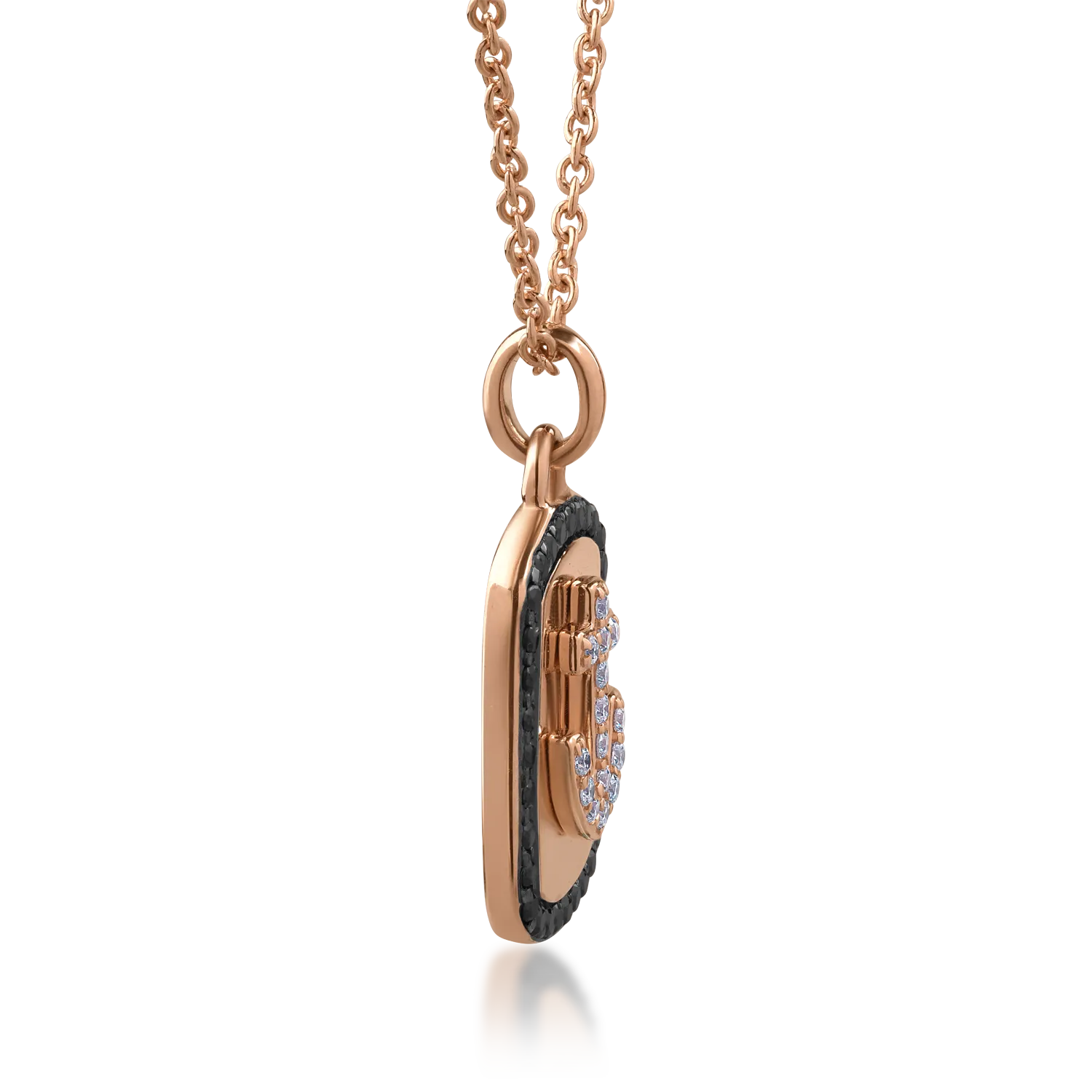 Lant cu pandantiv din aur roz cu diamante negre de 0.25ct si diamante transparente de 0.11ct