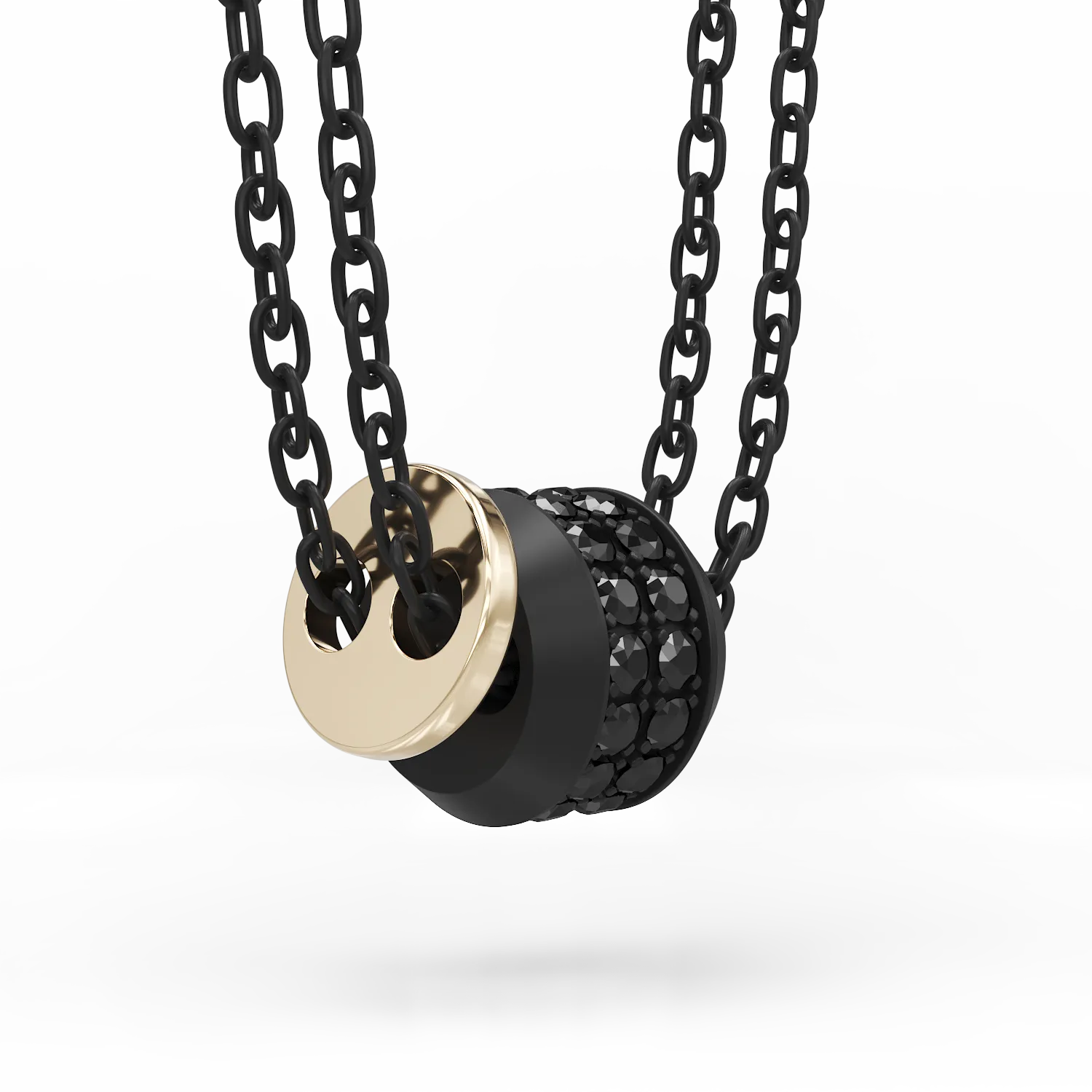 Detalii neasteptate, elemente neconventionale care, aduse impreuna, creeaza o colectie statement pentru barbati. Lantul dublu, pandantivul circular incrustat cu diamante negre si cel din aur galben, compun o bijuterie versatila, contemporana, potrivita celor care arata incredere fara efort.