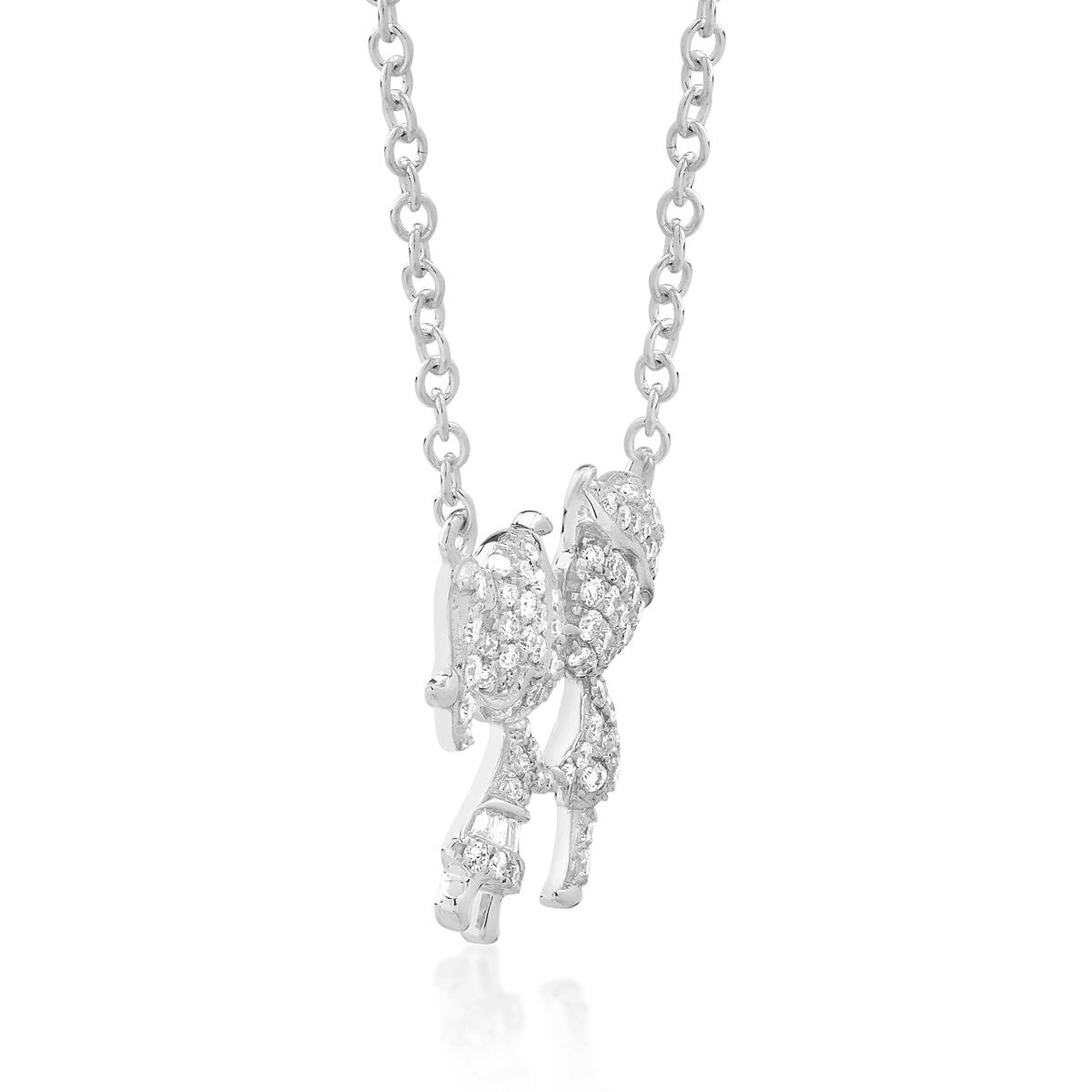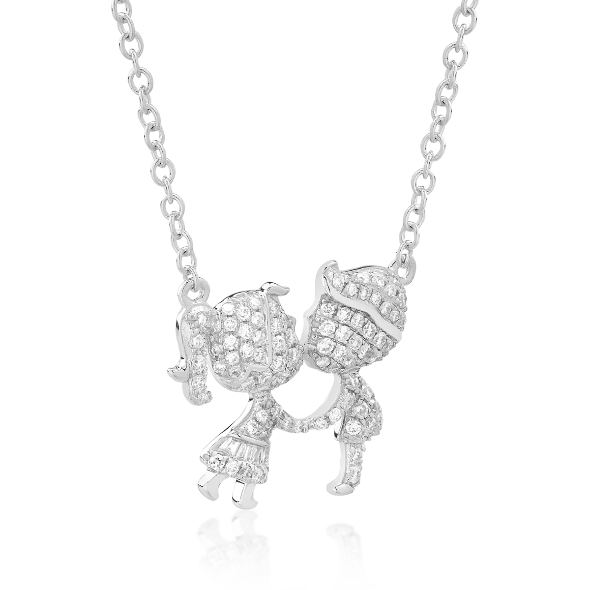 Lant cu pandantiv fetita si baietel din aur alb cu diamante baguette si rotunde de 0.25ct