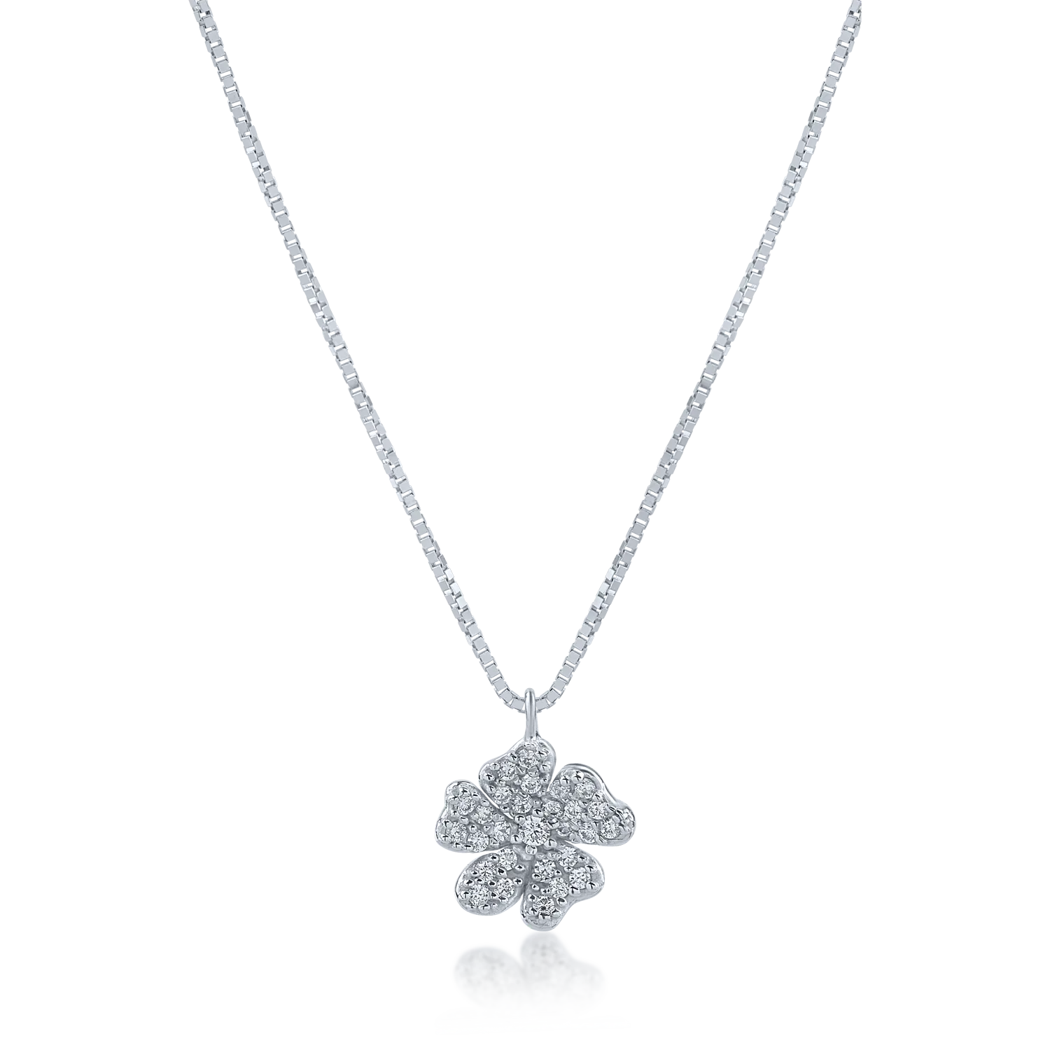 Lant cu pandantiv floare din aur alb