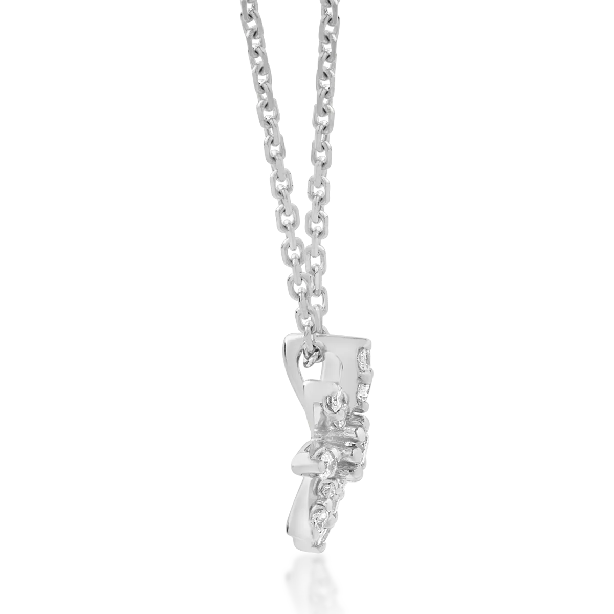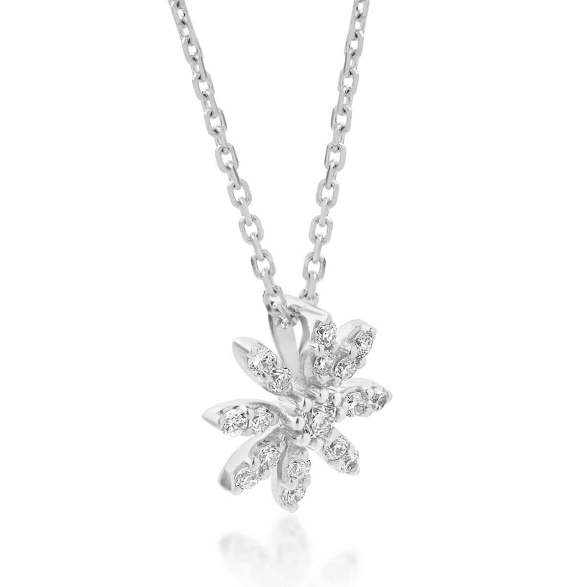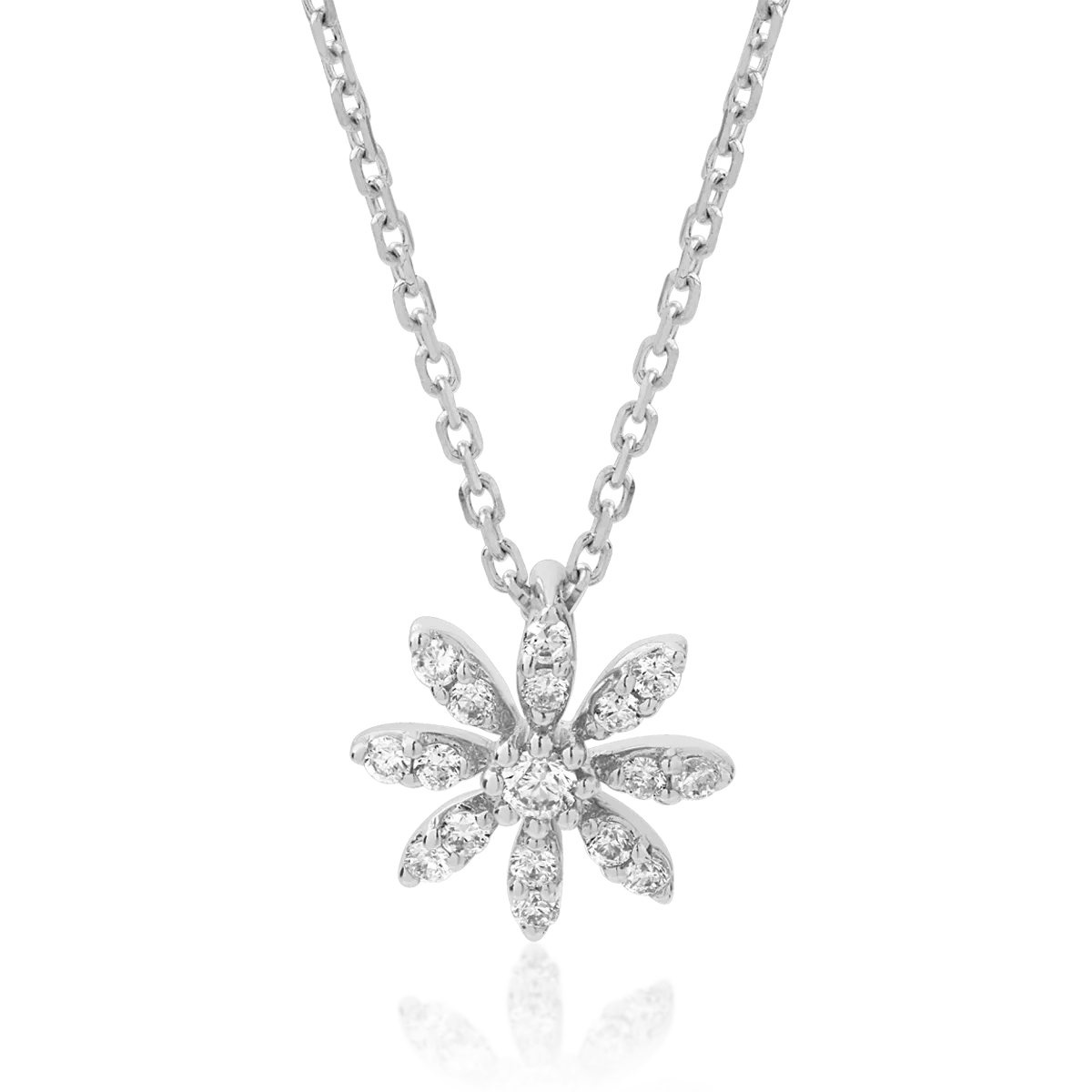 Lant cu pandantiv floare din aur alb cu diamant de 0.01ct si diamante de 0.06ct