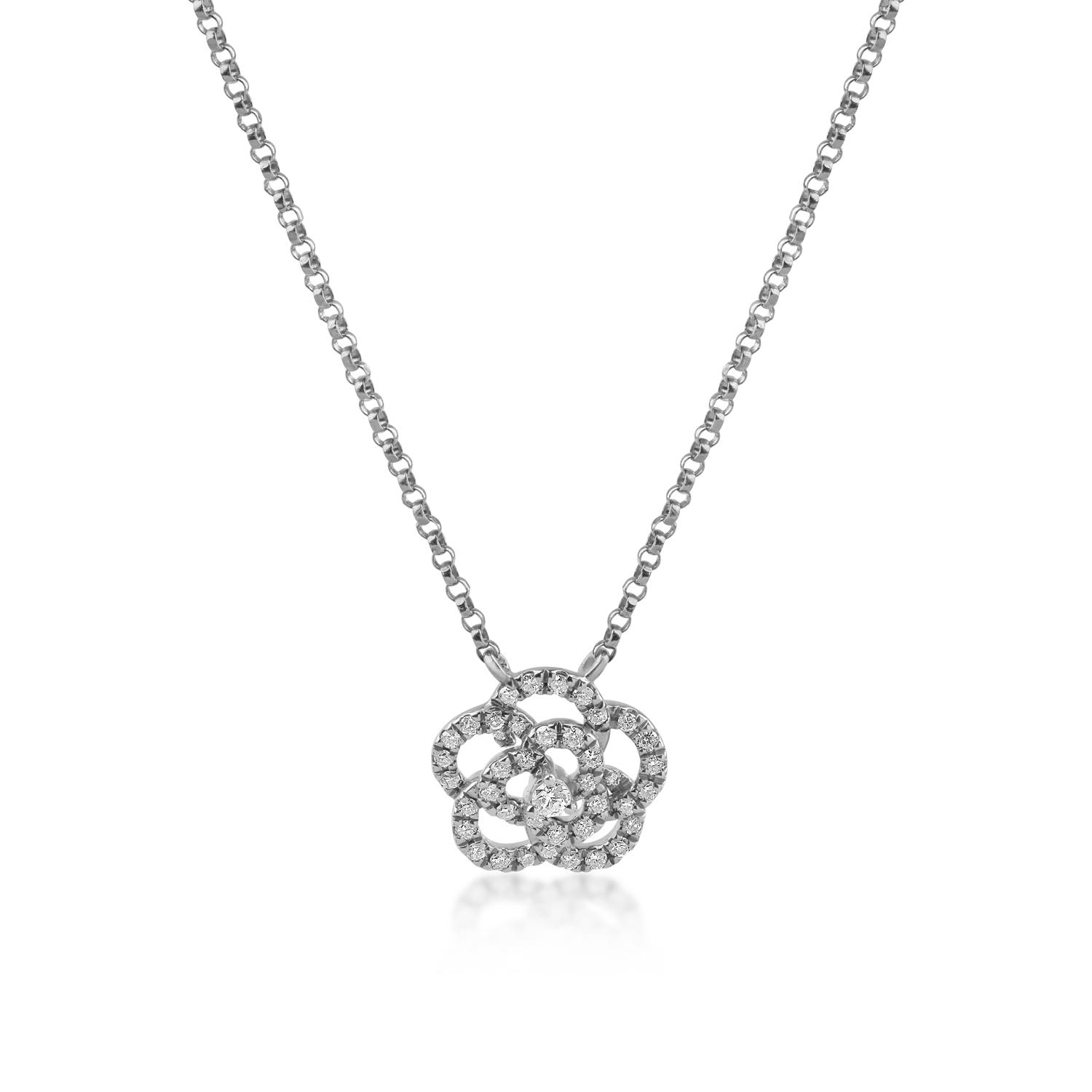 Lant cu pandantiv floare din aur alb cu diamante de 0.19ct