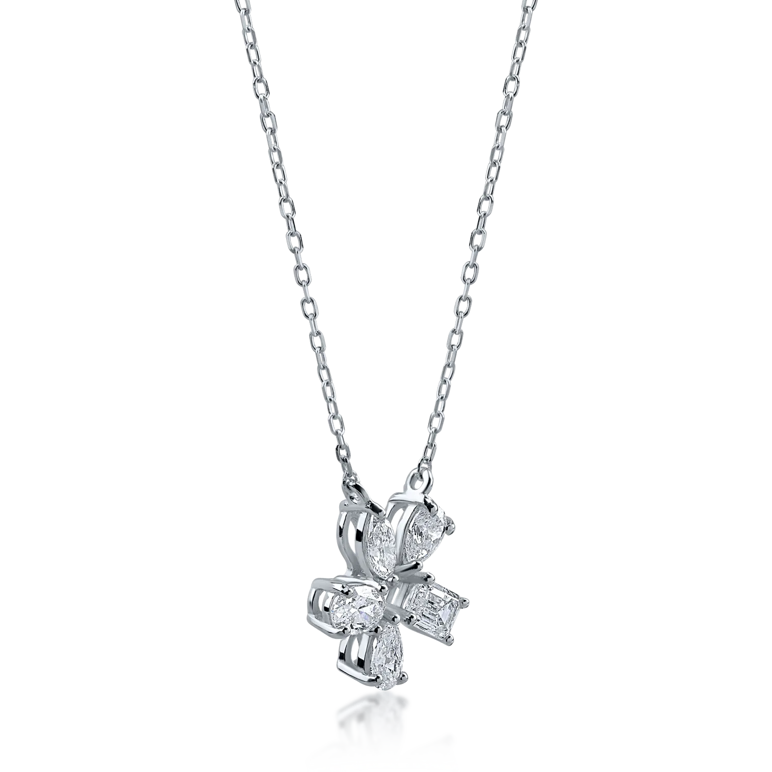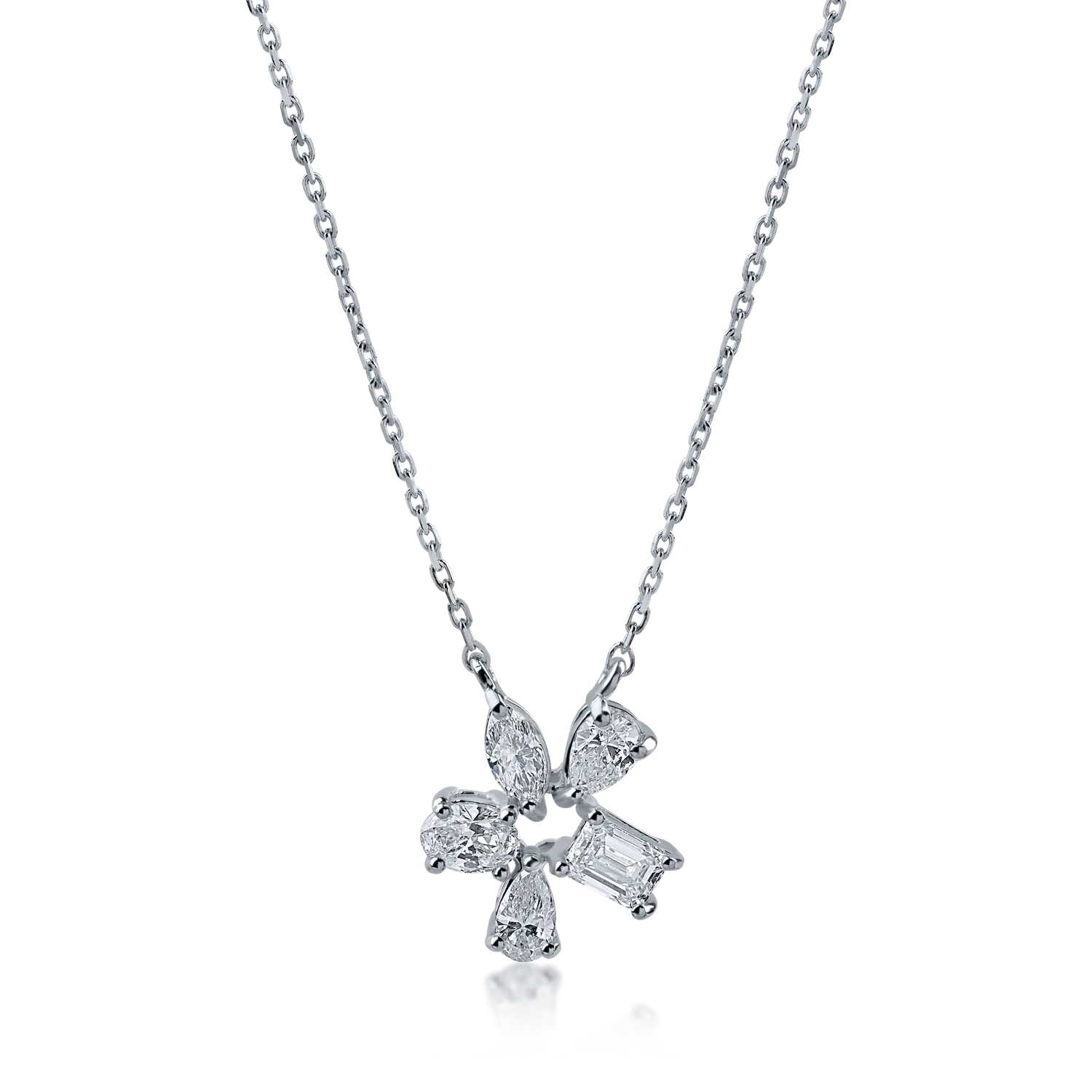 Lant cu pandantiv floare din aur alb cu diamante de 0.61ct