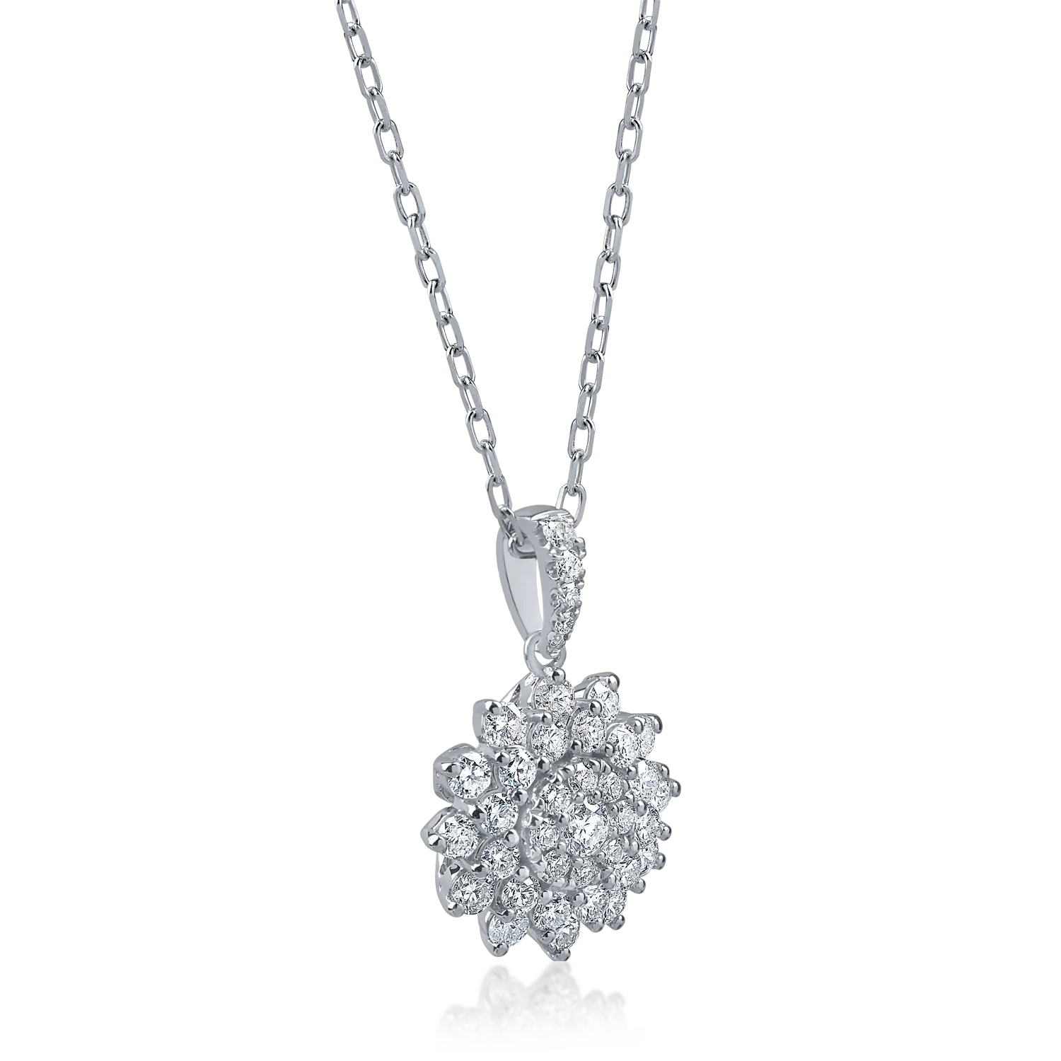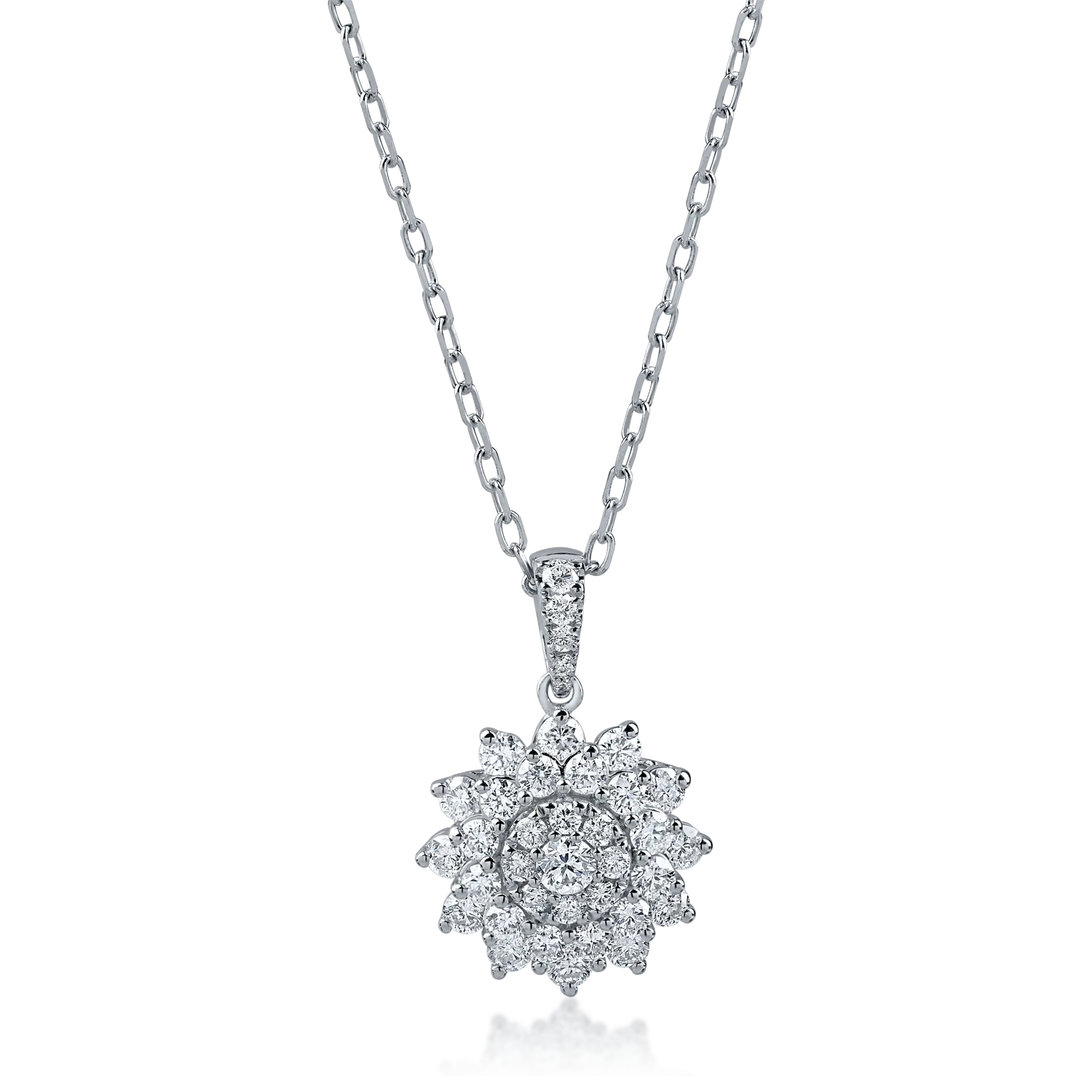 Lant cu pandantiv floare din aur alb cu diamante de 0.6ct