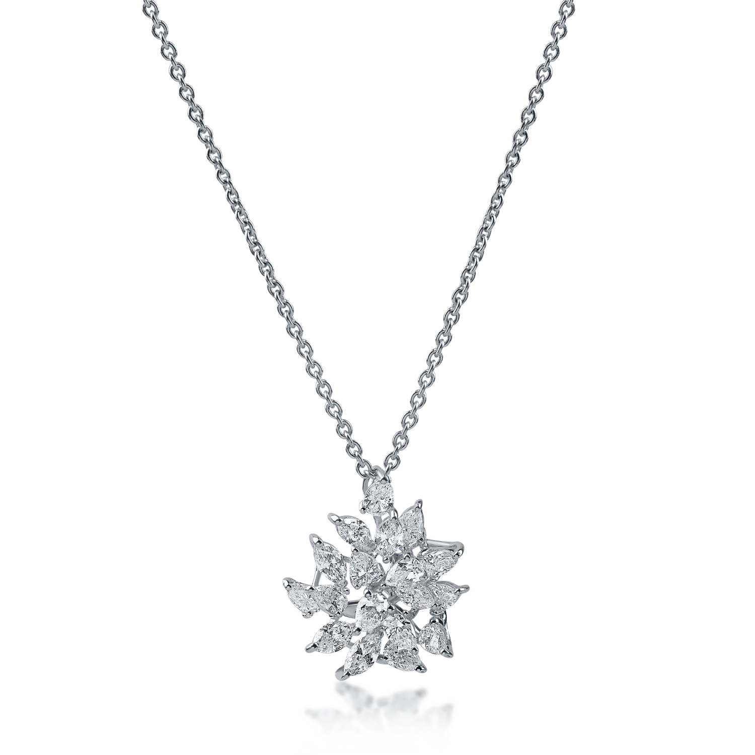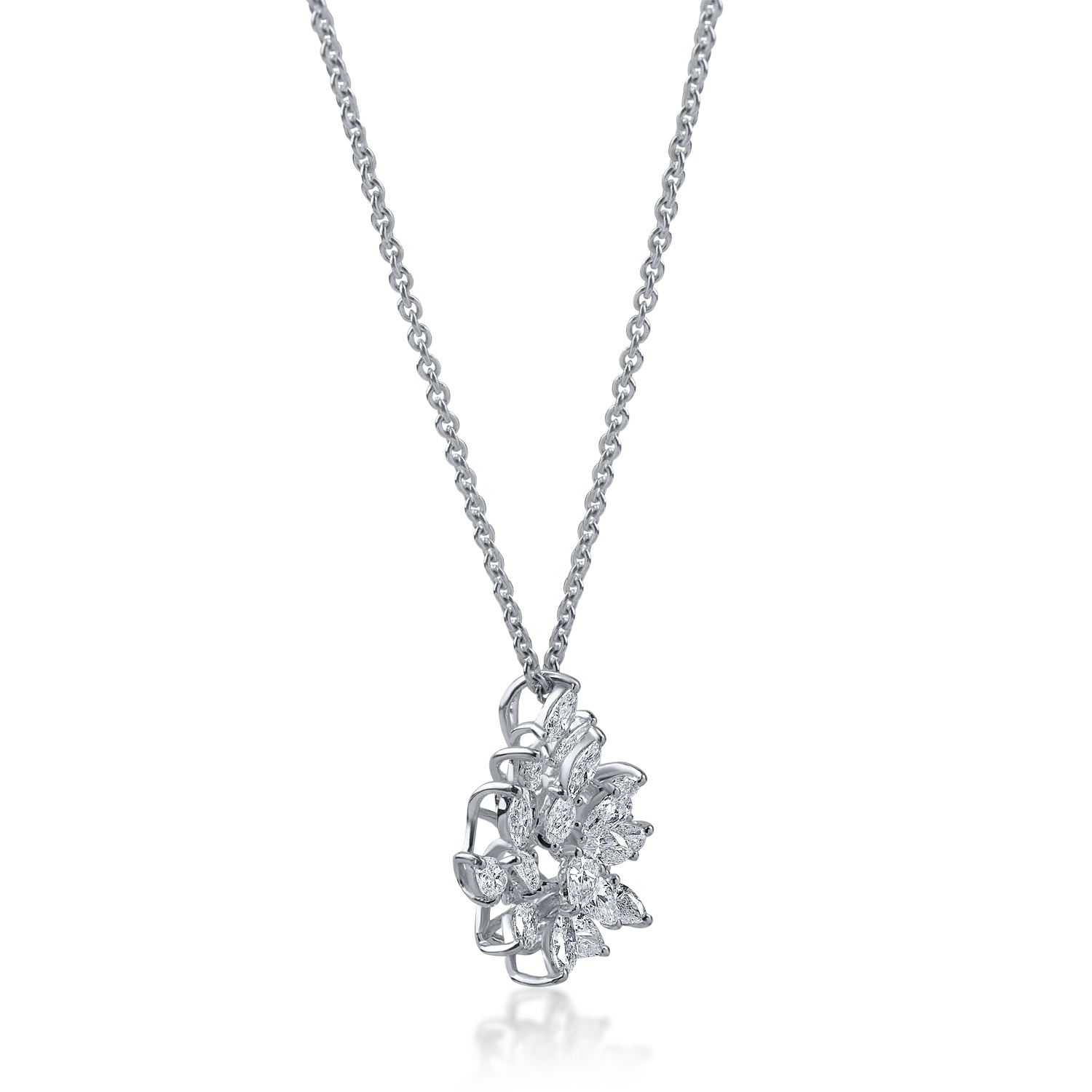 Lant cu pandantiv floare din aur alb cu diamante pear si marquise de 1.14ct