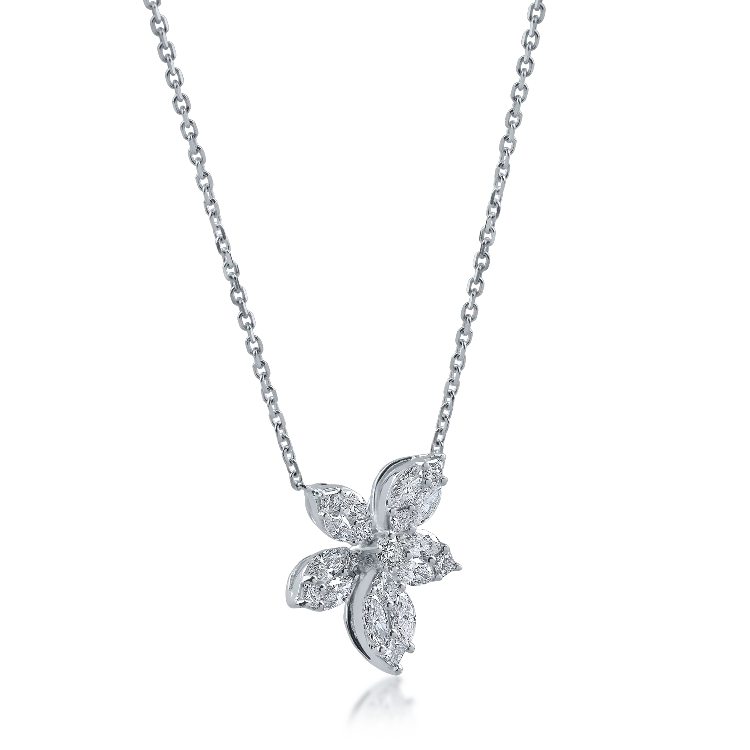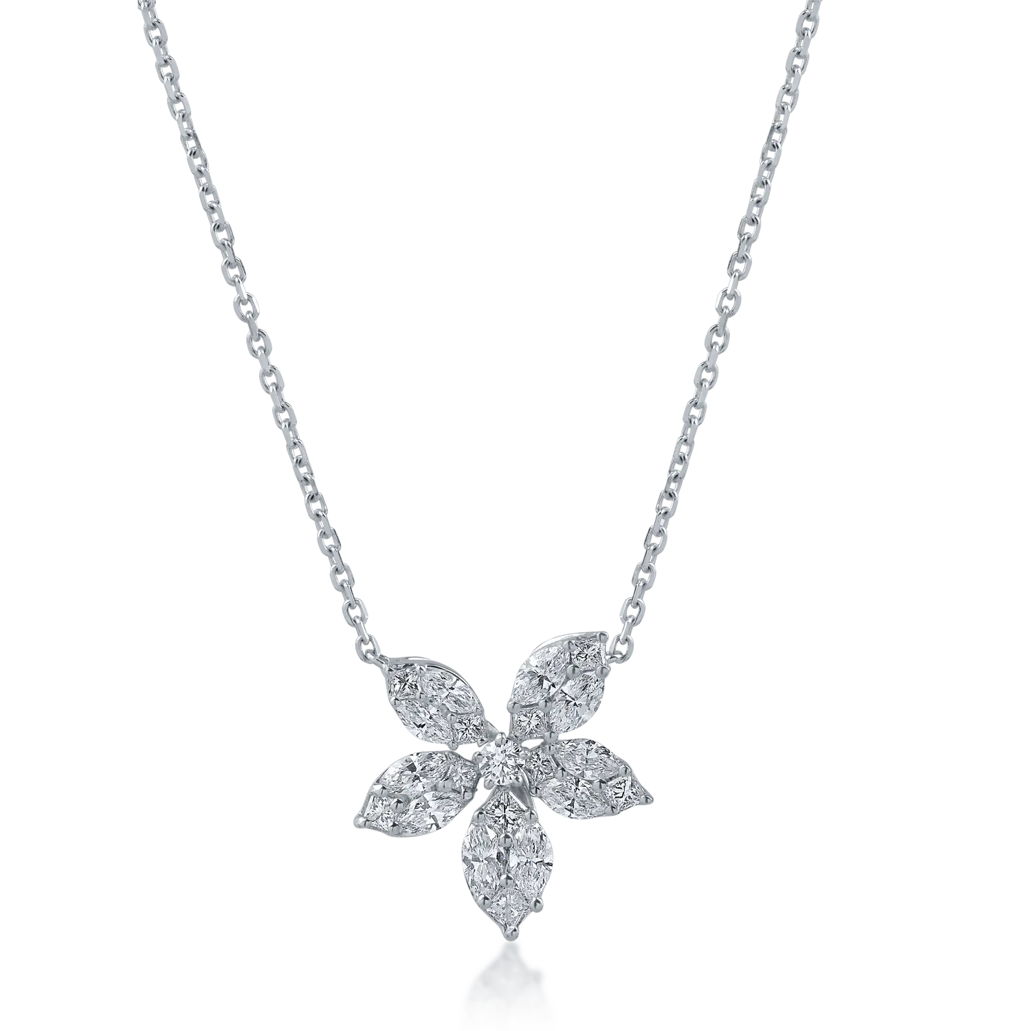 Lant cu pandantiv floare din aur alb cu diamante princess, marquise si rotunde de 0.86ct