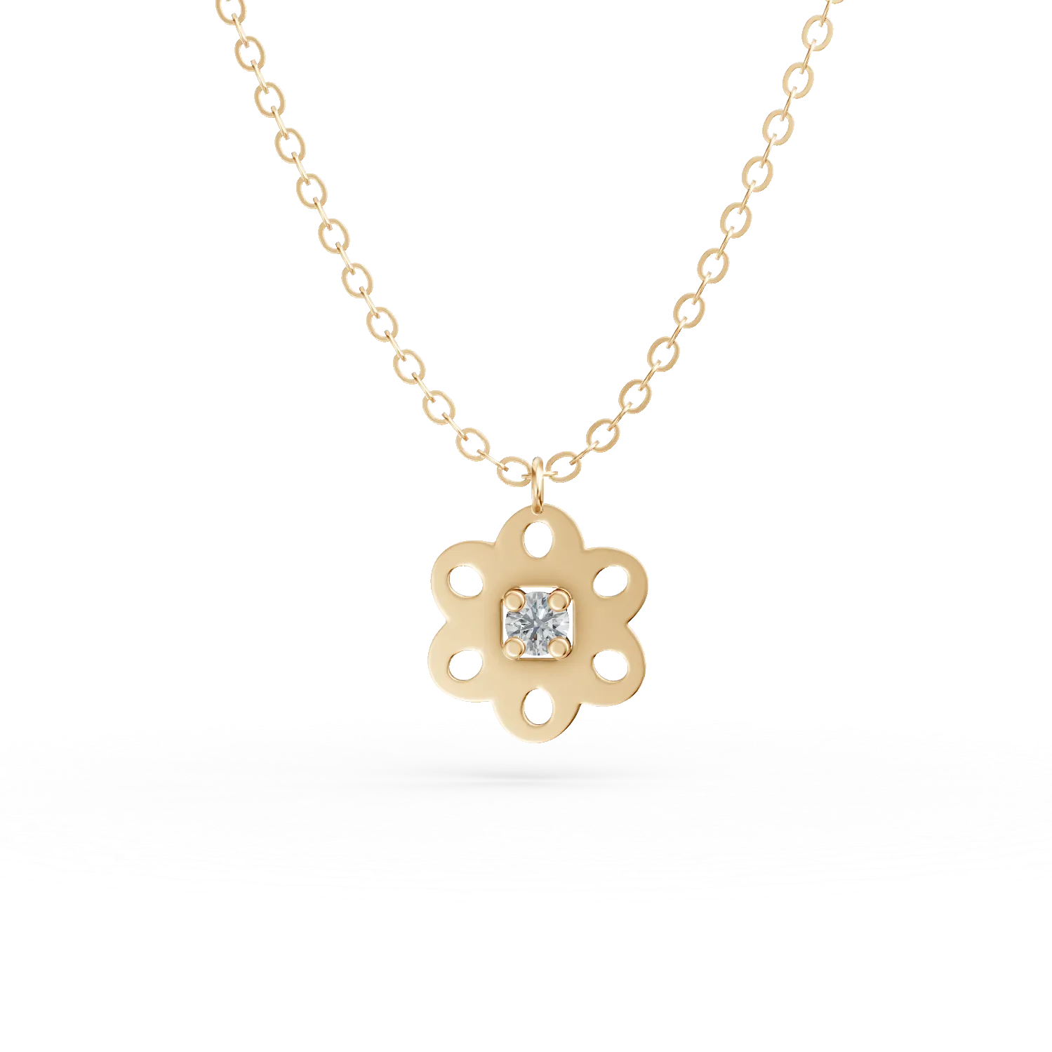 Lant cu pandantiv floare din aur galben cu diamant de 0.02ct