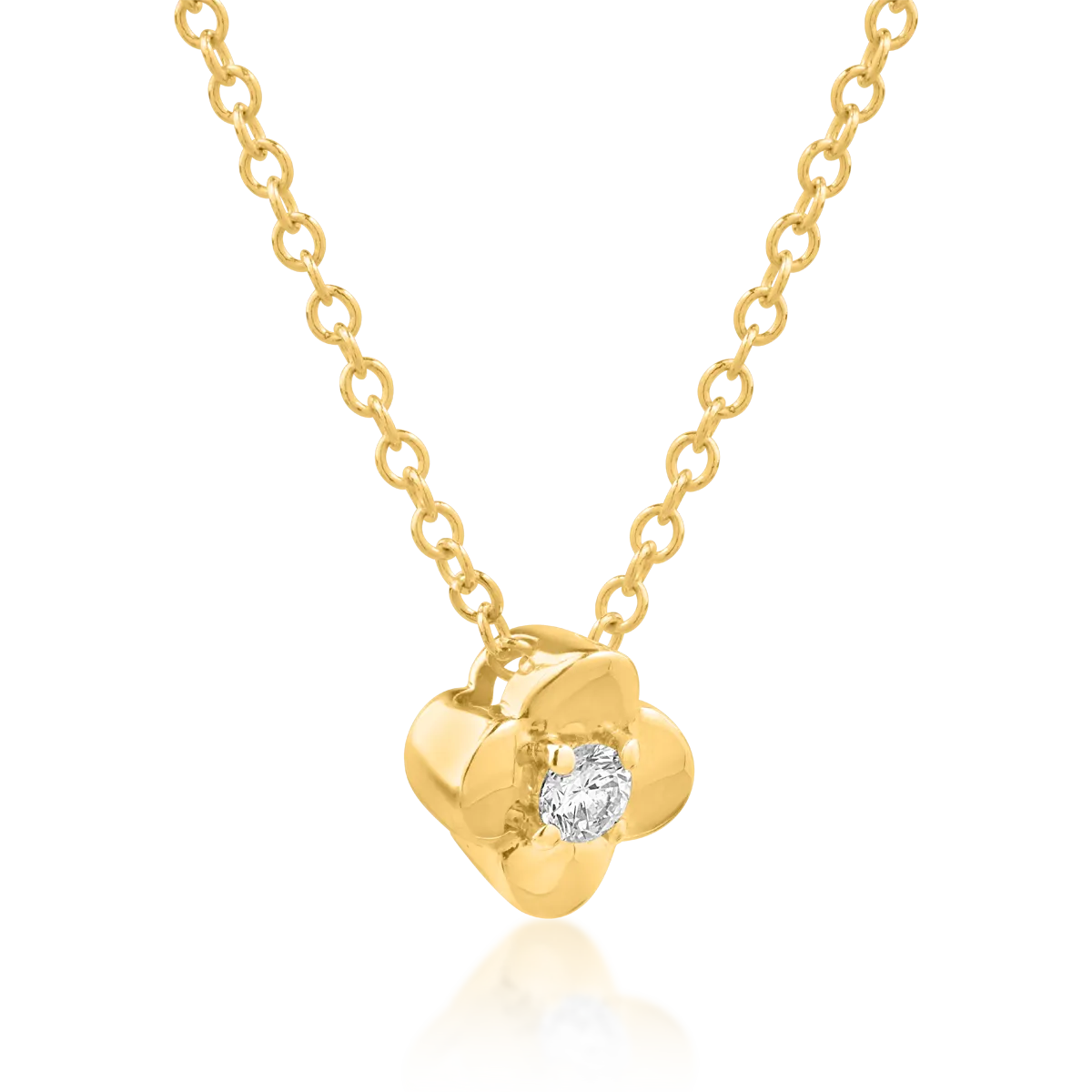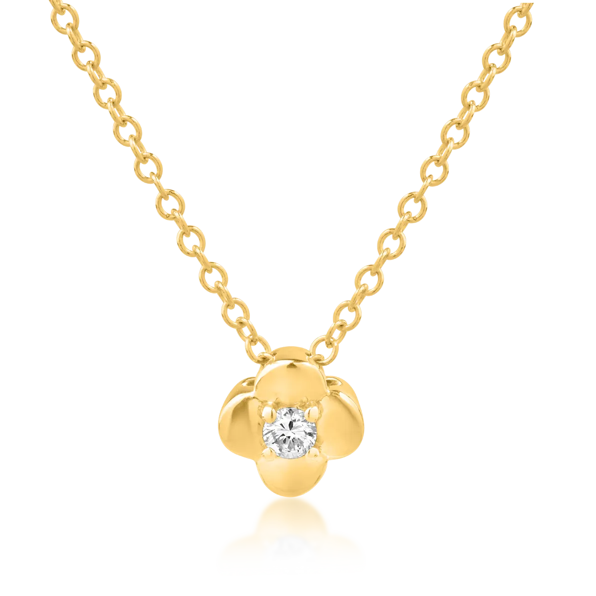 Lant cu pandantiv floare din aur galben cu diamant de 0.039ct