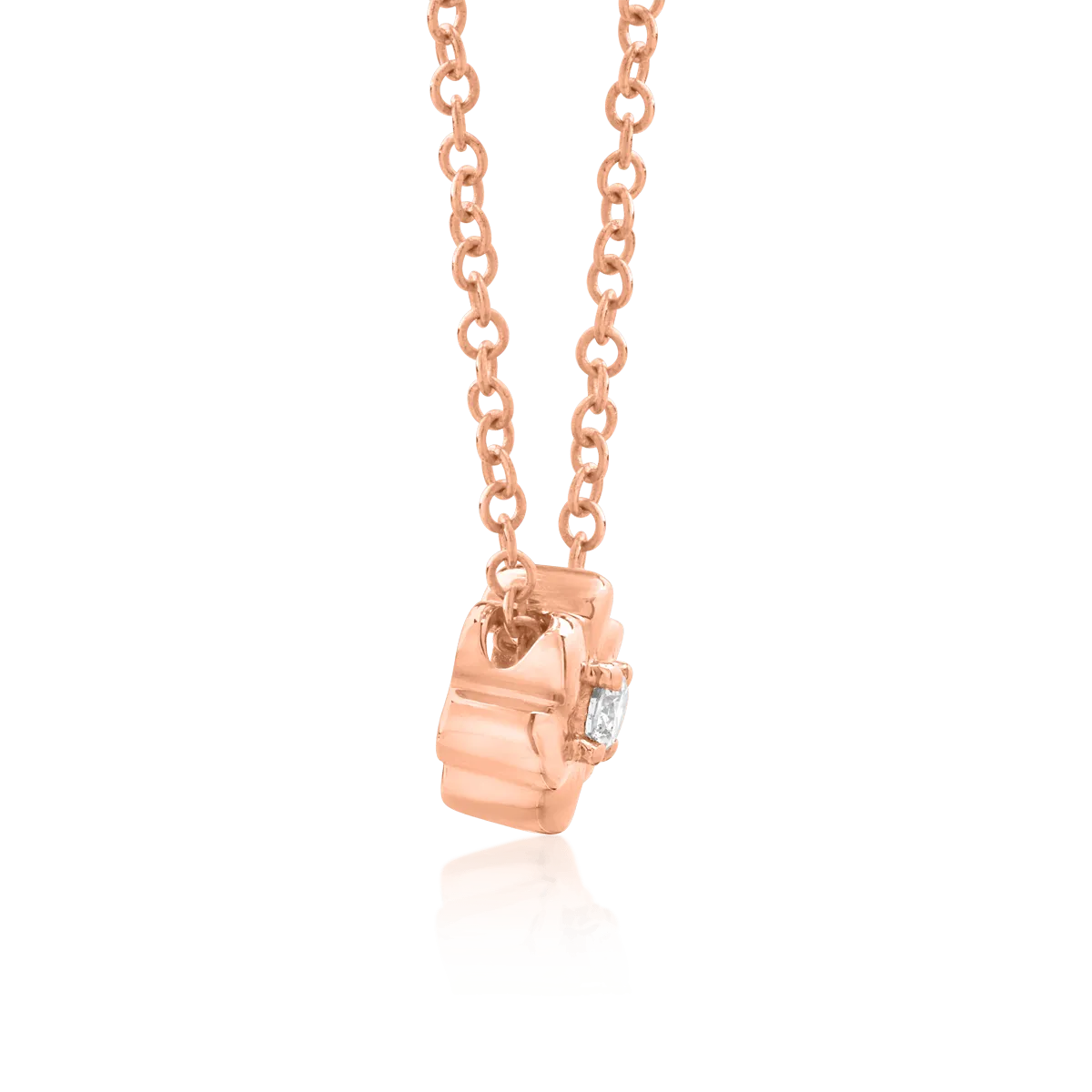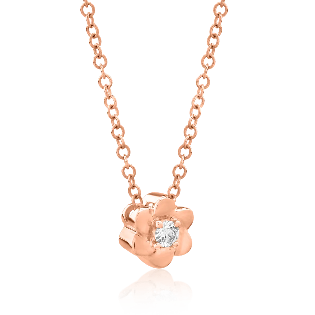 Lant cu pandantiv floare din aur roz cu diamant de 0.042ct
