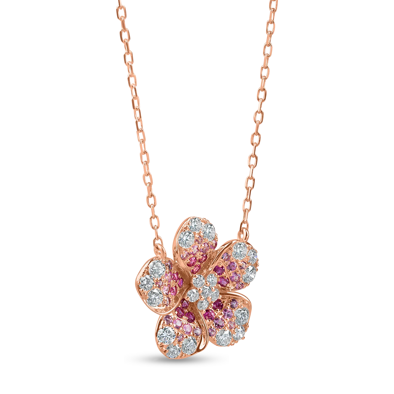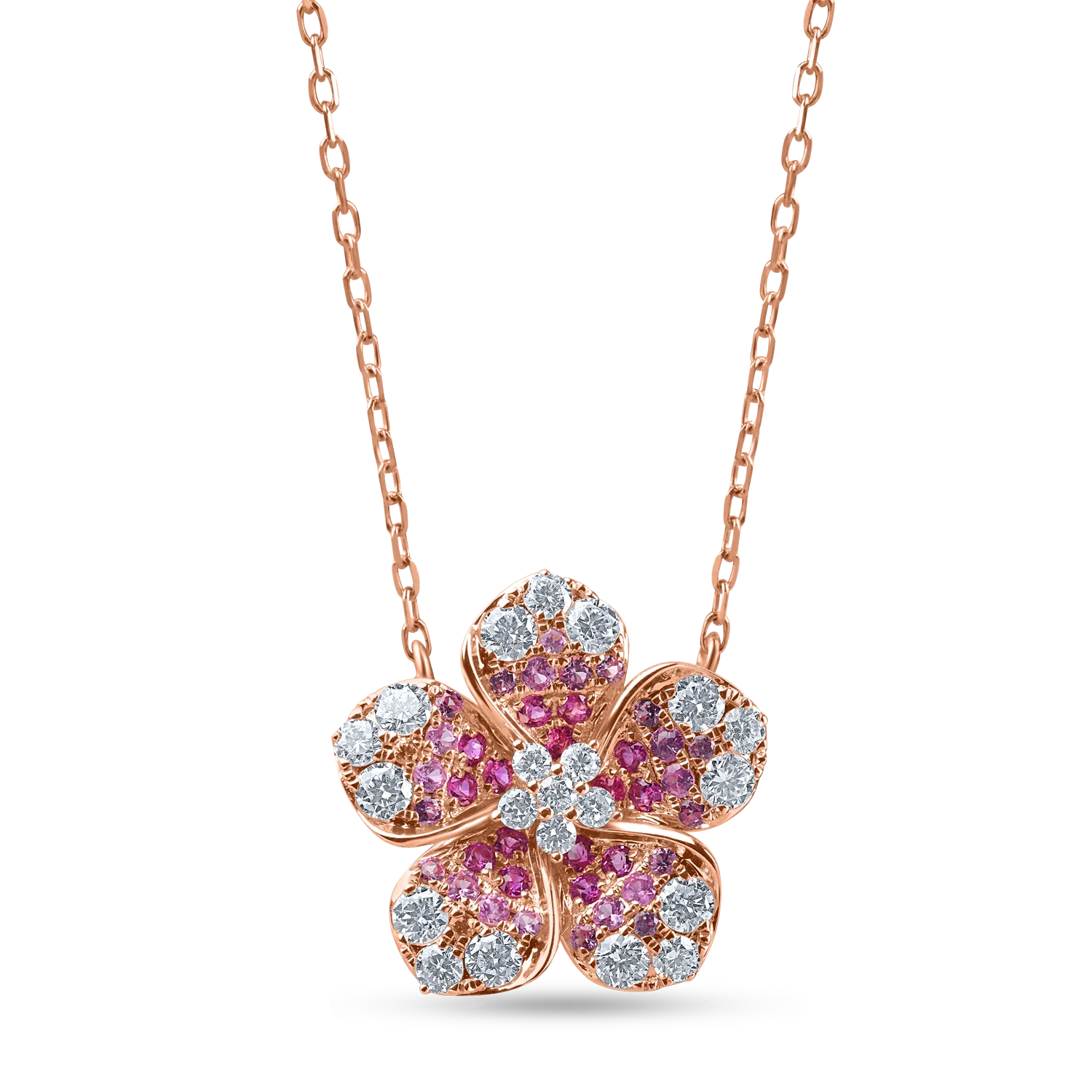 Lant cu pandantiv floare din aur roz cu diamante de 0.6ct si safire roz de 0.4ct