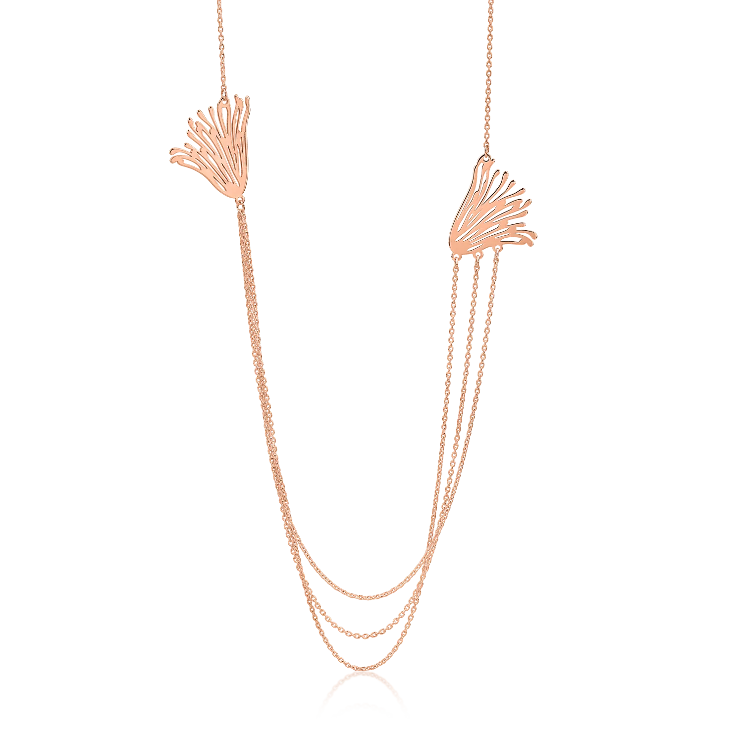 Adauga un aer modern cu acest lant cu pandantiv floare din aur roz. Designul asimetric si stralucirea aurului roz transforma acest pandantiv intr-o piesa perfecta pentru un stil original. Descopera eleganta neconventionala cu bijuteriile TEILOR.