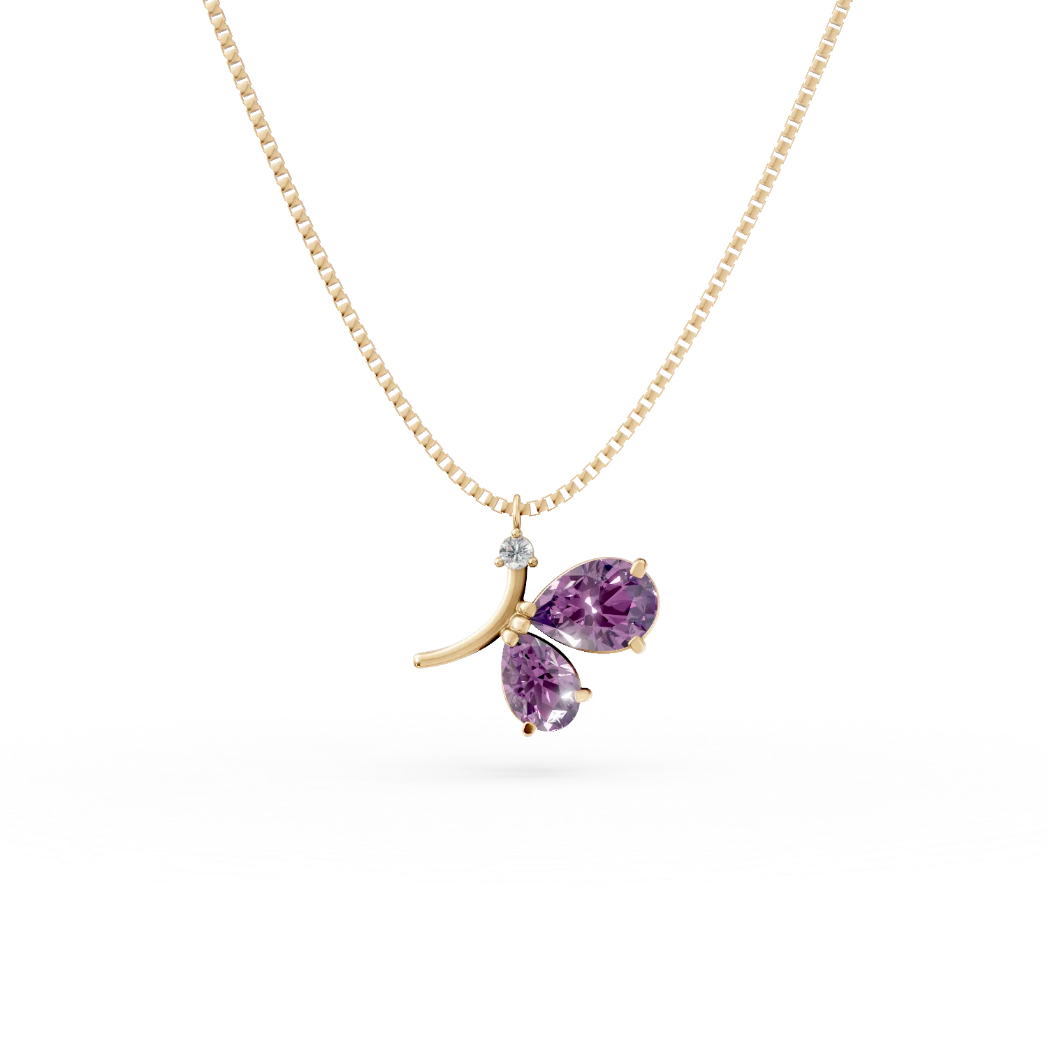 Lant cu pandantiv fluture din aur galben cu ametiste de 0.85ct si zirconia