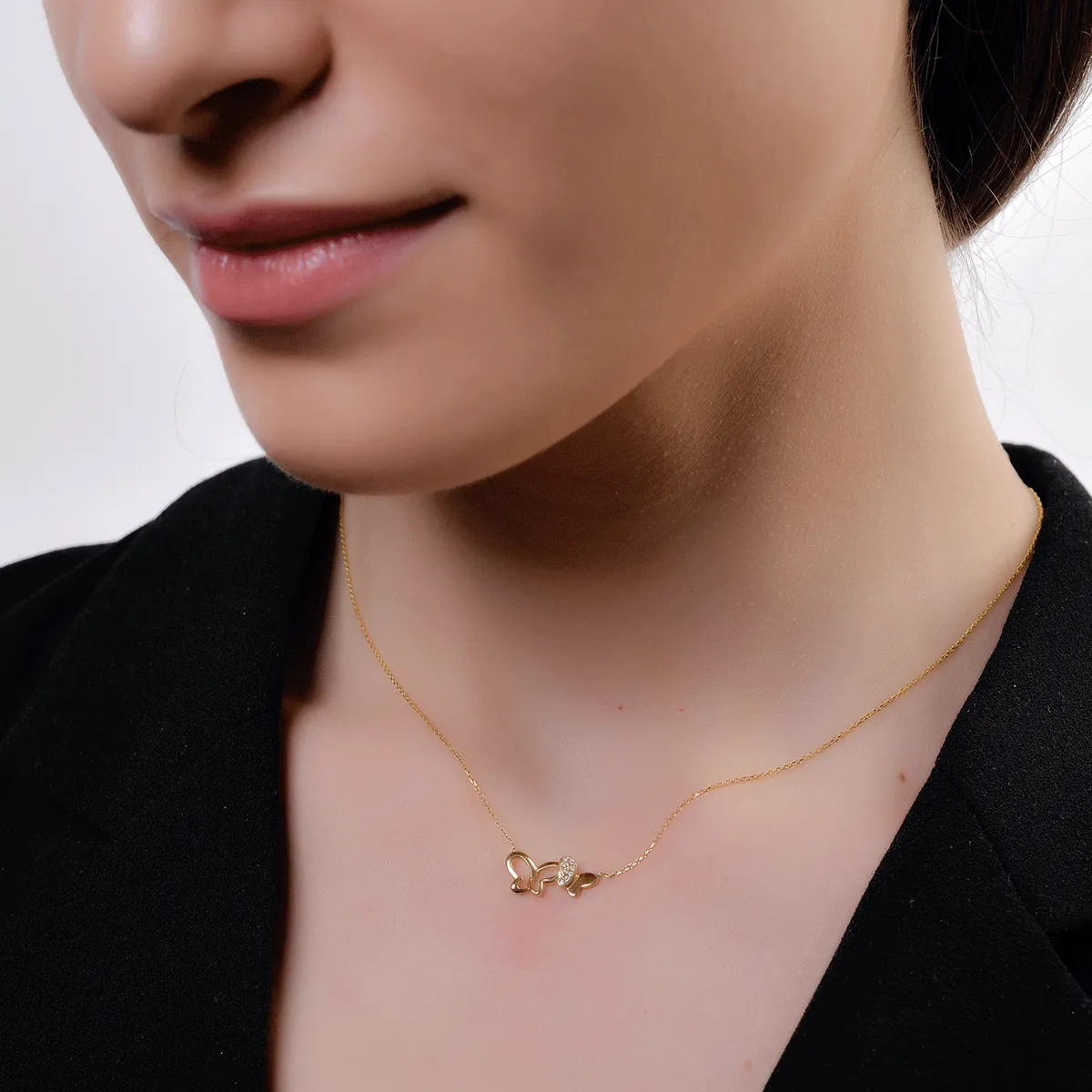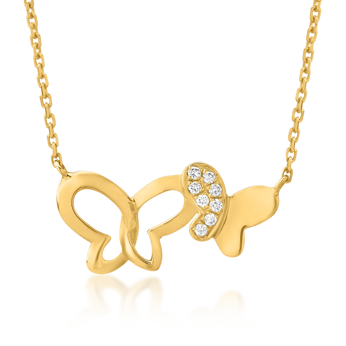Lant cu pandantiv fluturi din aur galben cu diamant de 0.021ct